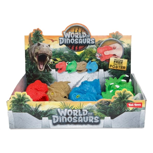 Антистресовата глава на динозавър е забавно помощно средство за деца и възрастни. При стискане в пастта се появяват еластични, запълнени със слузест гел топчета, които осигуряват приятно тактилно стимулиране и помагат за отпускане на напрежението и за съсредоточаване. Благодарение на компактния размер се побира в джоб или ученическа раница.