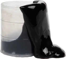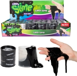 Черният слайм в малък варел е перфектна играчка за деца и възрастни, които искат да се забавляват и да релаксират. Този пластичен и лепкав материал е отличен за тактилна игра или за намаляване на стреса.