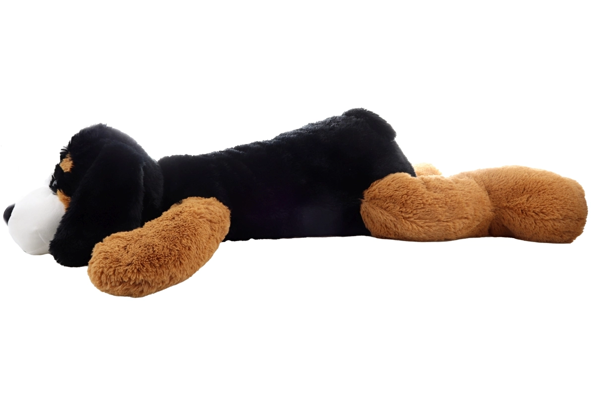 Това голямо плюшено куче впечатлява с реалистична комбинация от цветове и мек повърхностен слой, който направо приканва към прегръдка. С размери 100 × 57 × 20 см служи не само като играчка, но и като удобна възглавничка или декоративен елемент в интериора.