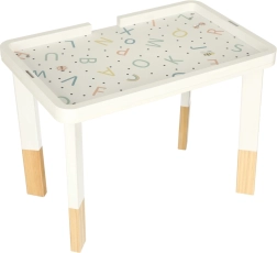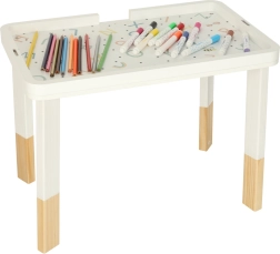 Масичката е изработена от качествено дърво със заоблени ръбове и е лакирана с нетоксични бои. Отговаря на европейските стандарти за безопасност (CE). Благодарение на практичния плот лесно я използвате и като място за писане, рисуване и креативно творчество.