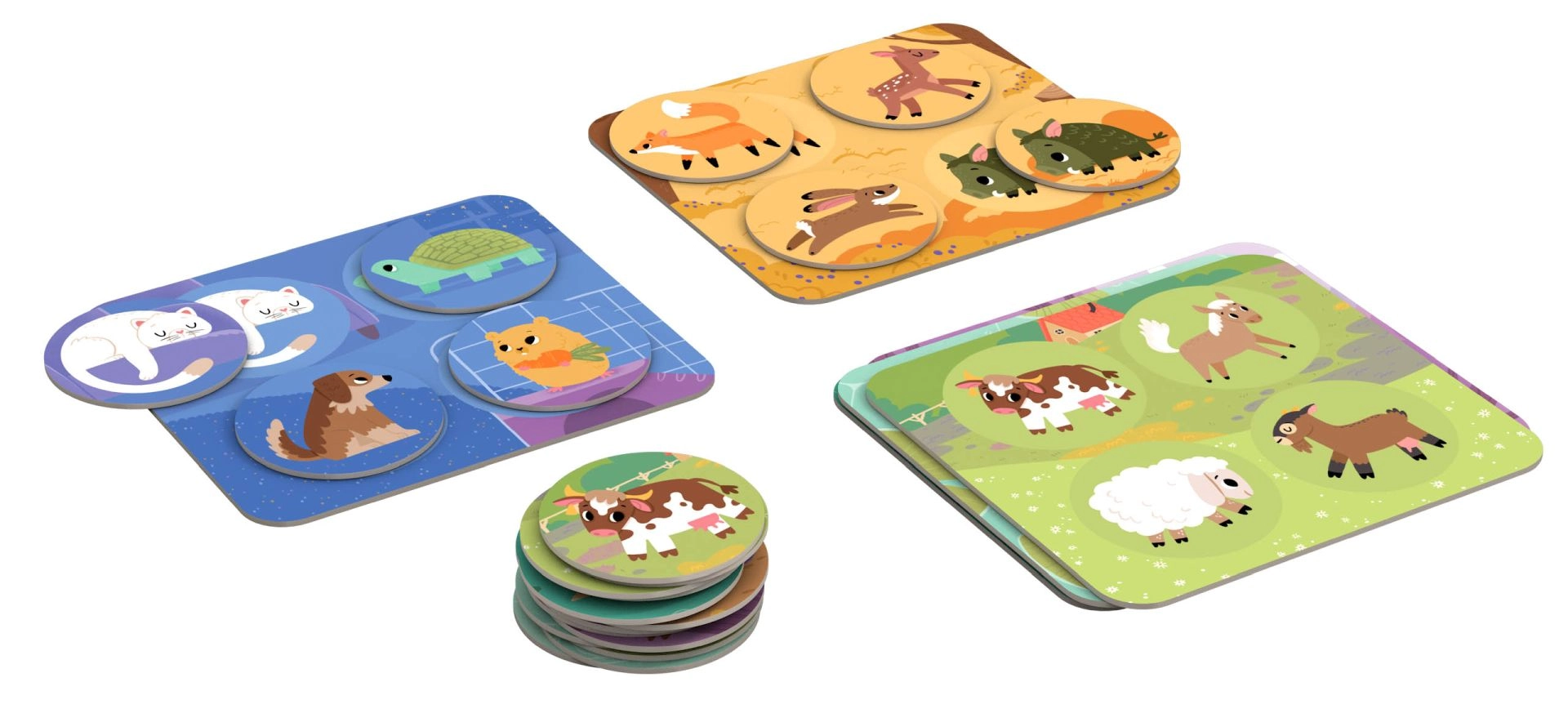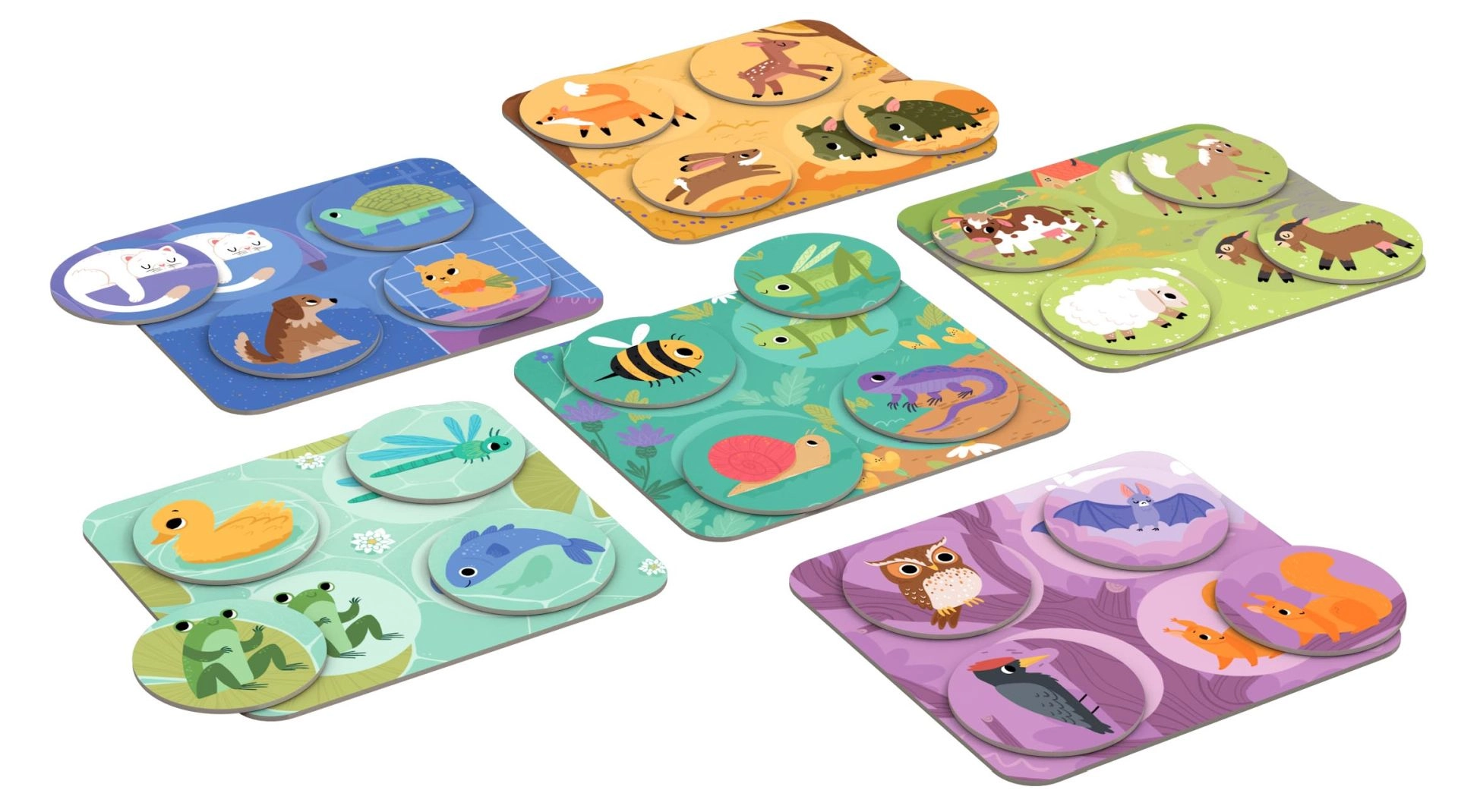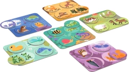 Тази популярна игра по приятелски начин запознава малчуганите с 24 животни и техните местообитания – у дома, в гората, на ливадата, край езерото и по върховете на дърветата. Благодарение на големите жетони и здравите дъски от 2 мм картон играта е лесна за хващане и безопасна за малки деца. В комплекта има и съвети и варианти за игра за родители и учители.