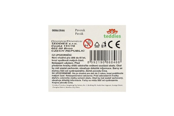 Тялото на паяка е изработено от здрава пластмаса за по-висока издръжливост по време на игра и дълъг живот на играчката.
