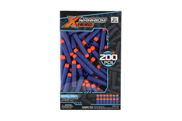 Допълнете запасите за своите бластерни битки: този комплект предлага 200 бр. пяночни стрели в син цвят с оранжов връх за по-добра видимост. Стрелите са изработени от мека, устойчива пяна, подходящи са за игра на закрито и на открито и се намират лесно след екшъна.