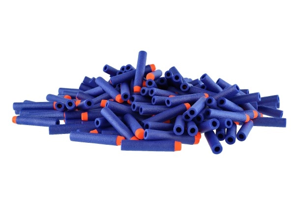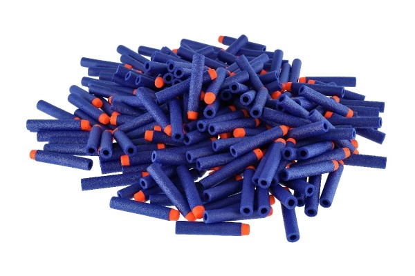 Стандартната форма пасва на повечето бластери (напр. NERF, X-SHOT). Синият цвят и оранжовите върхове улесняват намирането на стрелите след игра.