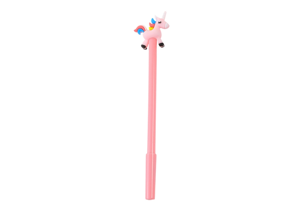 Очарователен химикал с гумен еднорог впечатлява деца и възрастни. Има черен пълнител, фин връх 0,5 mm за прецизно писане и капачка против изсъхване. Предлага се в микс от цветове (лилав, розов, син, бял). Подходящ за училище, офис и дом.