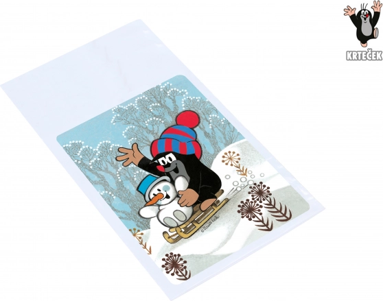 Практичен и очарователен подаръчен плик с мотив на Къртичето, който ще зарадва малки и големи. Идеален за опаковане на дребни подаръци, сладкиши или изненади под елхата. Благодарение на размерите 21 × 40 × 8,5 cm предлага достатъчно пространство и е лесен за използване – просто поставете подаръка и затворете плика.