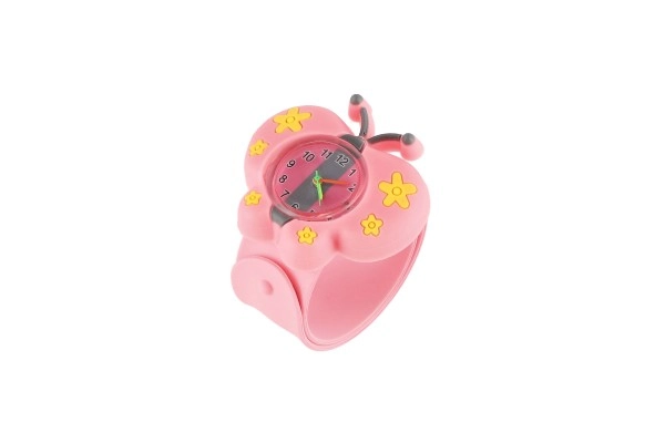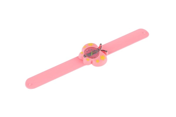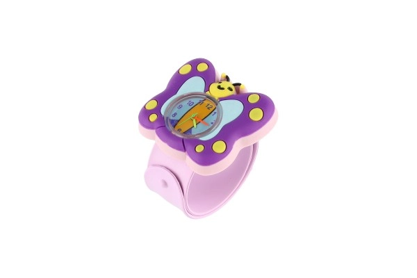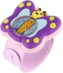 Очарователни детски часовници с мотив пеперуда, които съчетават забавление и учене на часа. Благодарение на самонавиващата се slap каишка от мек силикон се слагат лесно и стоят удобно на ръката. Цветово разграничени стрелки или ясен дисплей помагат на децата да се ориентират във времето. Включена е батерия LR626 и здраво изпълнение, идеално за ежедневна употреба. Предлагат се 2 цветови варианта.