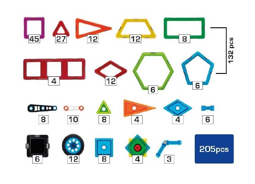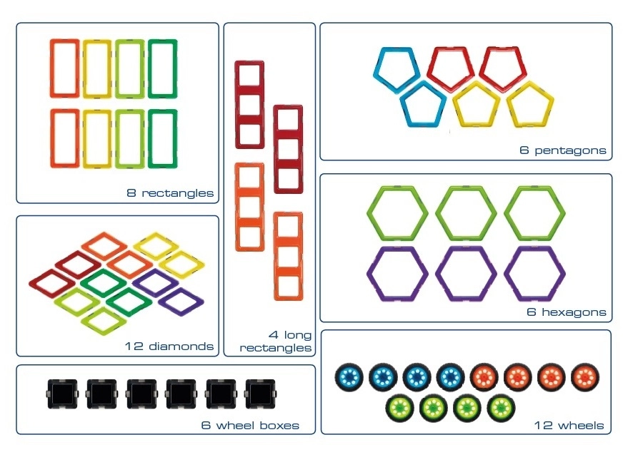 Включени са подробен опис на съдържанието и вдъхновяващи страници. Продуктите GeoSmart не са съвместими с други марки магнитни конструктори.