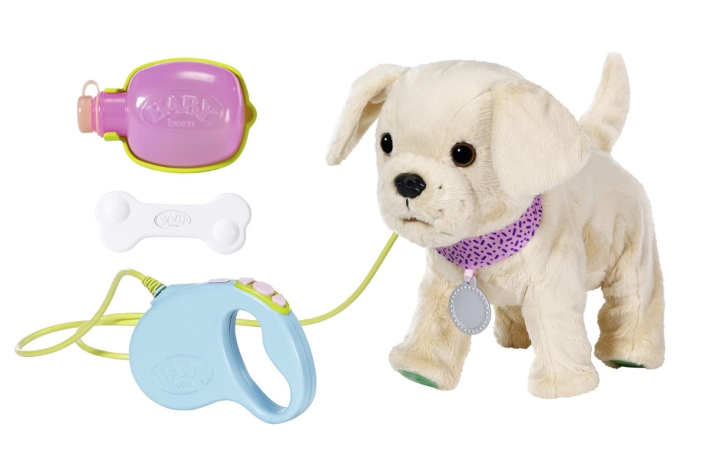 Запознайте децата с техния първи „домашен любимец“ – мекото кученце BABY Born, което реагира на допир, издава сладки кучешки звуци и може да ходи на повод. Благодарение на практичната транспортна клетка малките грижещи се могат да го вземат навсякъде със себе си и да му осигурят безопасно място за почивка.