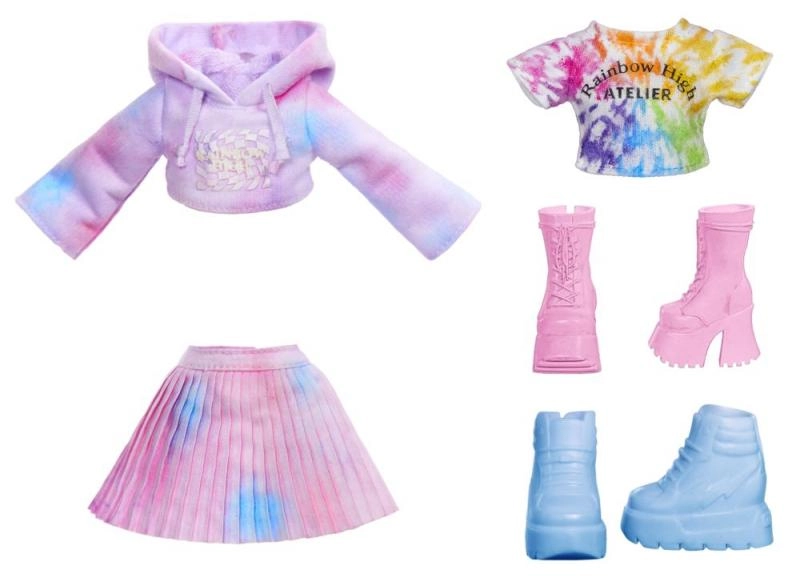 Сипете пигмента във вода и потопете в нея косата или дрехите на куклата. Така лесно ще създавате различни шарки и цветови комбинации. Изплакнете куклата и оцветете я съвсем различно. Неограничена креативност само с куклата Rainbow High!