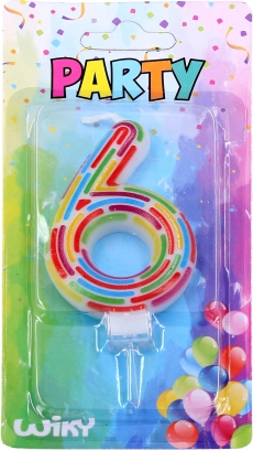 Стилна свещ за торта във форма на числото 6 с декор от шарки придава на празника чар и подчертава възрастта или юбилея. Благодарение на интегрираната восъчна стойка свещта се поставя лесно и стабилно върху тортата. Височината на свещта без държача е около 6 см. Идеална за рожден ден, годишнина и тематични партита.