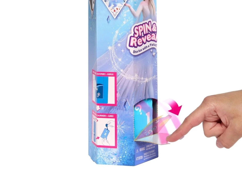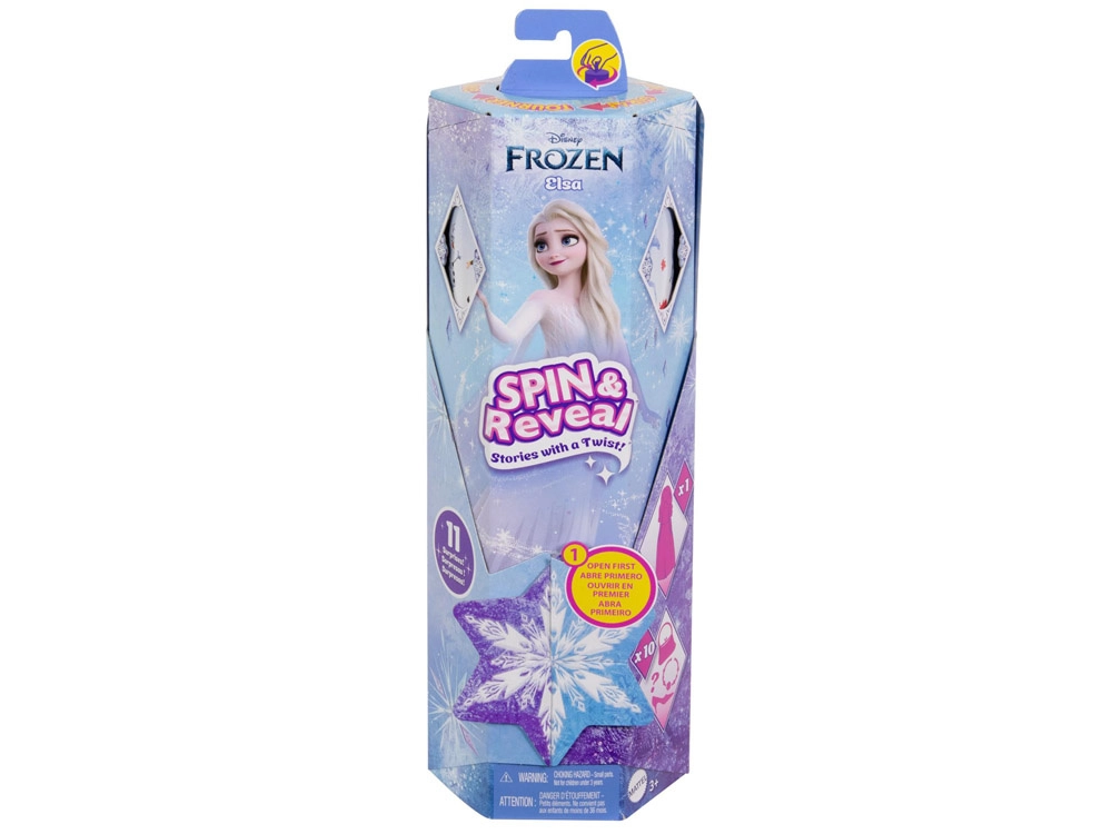 Открийте магическата кукла ЕЛЗА от света на DISNEY FROZEN с интерактивна опаковка Spin & Reveal и общо 11 изненади. Децата от 3 години ще се насладят на забавно разопаковане, стил и разказване на истории – куклата има дълга мека коса, сваляема пола и наметало и комплект модни аксесоари и стикери за довършване на сцената.