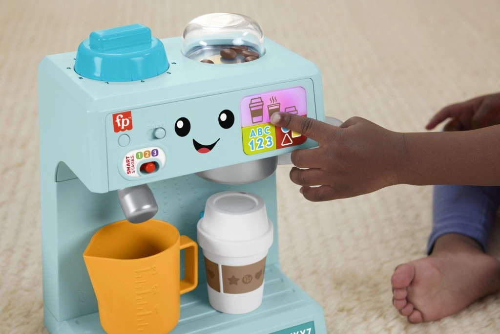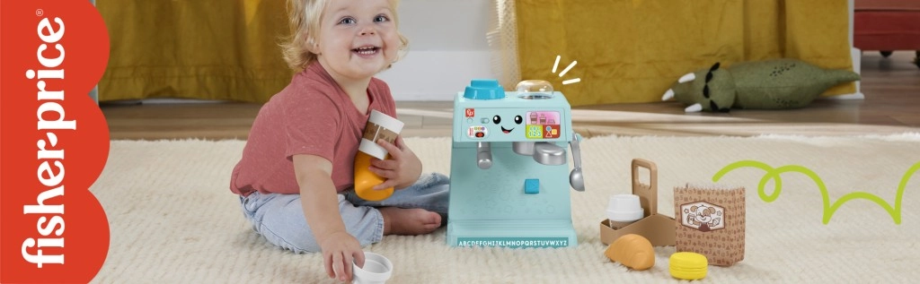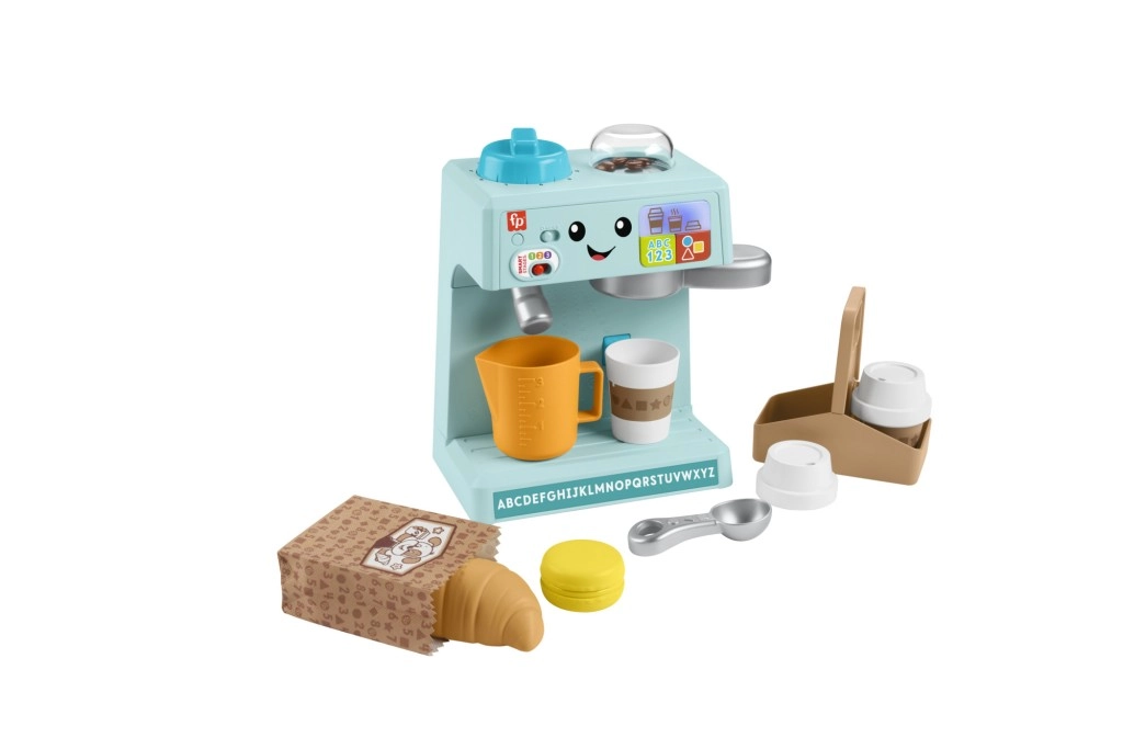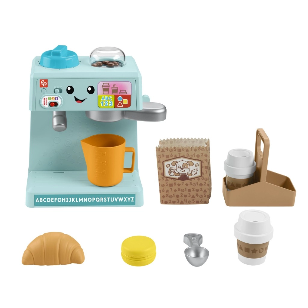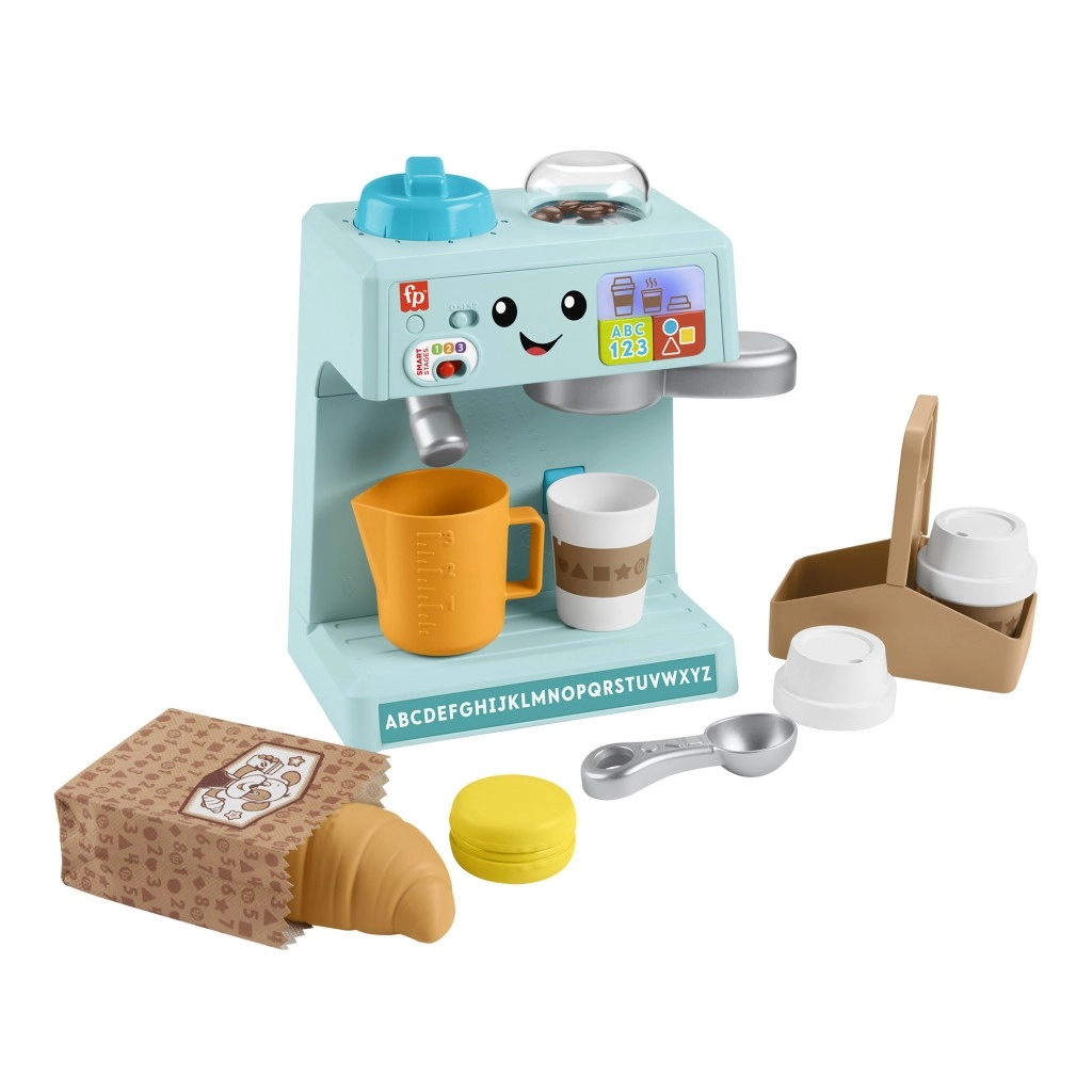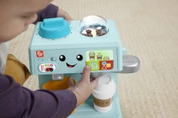 Тази детска кафемашина от Fisher-Price е предназначена за образователна игра. Интерактивните елементи помагат на децата да учат азбуката, цветовете и броенето. Възползвайте се от Smart Stages, за да персонализирате нивото на обучение. Кафемашината включва повече от 75 звука, песнички и фрази, които стимулират детското въображение.