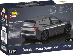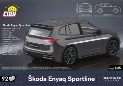 Конструкторът Skoda Enyaq Sportline е умален модел в мащаб 1:35, който точно възпроизвежда характерните форми на оригиналния автомобил Škoda Enyaq iV. Има въртящи се колела с гуми, идеални за движение по време на игра. Този модел ще зарадва не само децата, но и възрастните фенове на конструкторите, колекционерите и автомобилните ентусиасти.