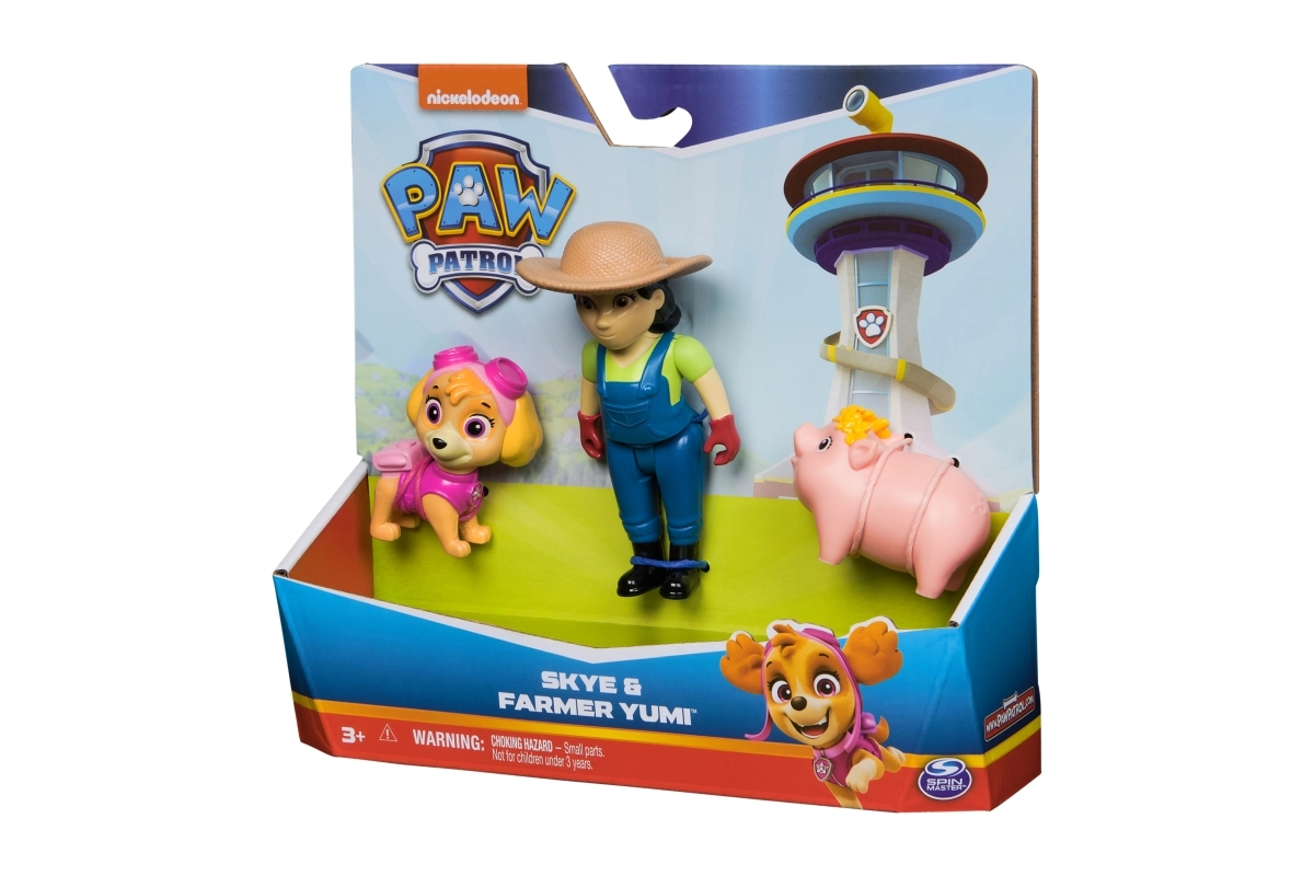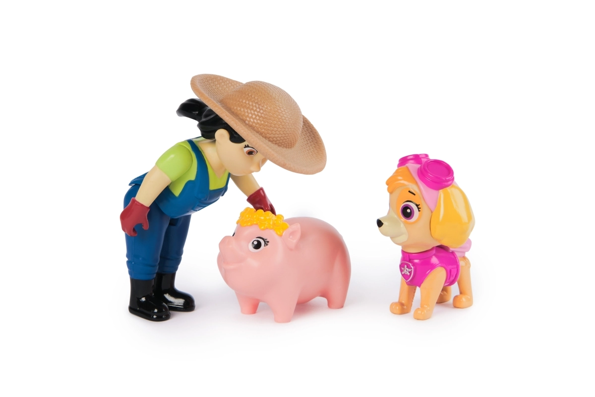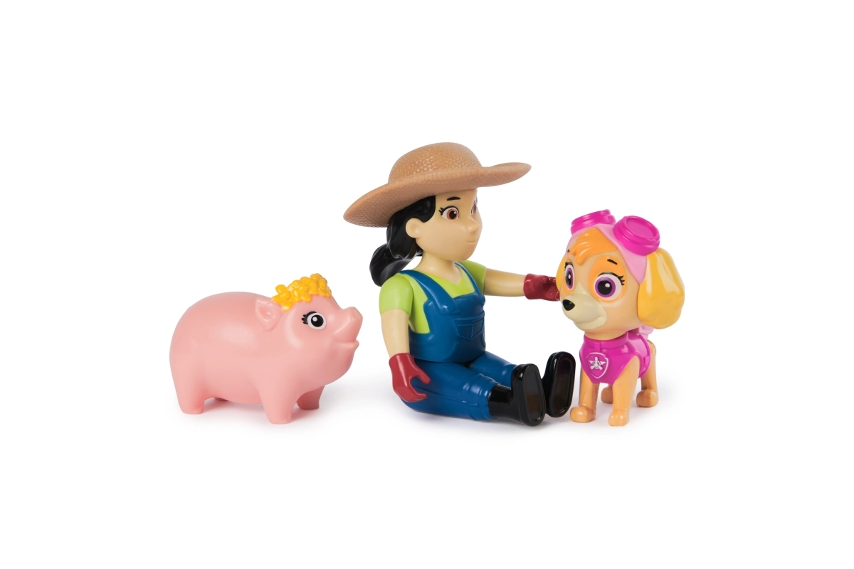 Създавайте свои мисии от любимия сериал PAW Patrol и се пренесете на фермата, където Скай помага на фермерката Юми с животните. Фигурките имат верни цветове и детайли като в сериала, което помага на децата да си припомнят любимите сцени и да развиват фантазията и уменията за разказване.