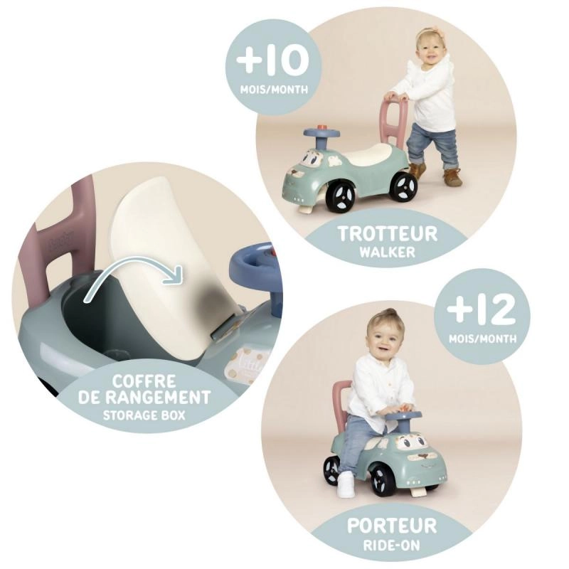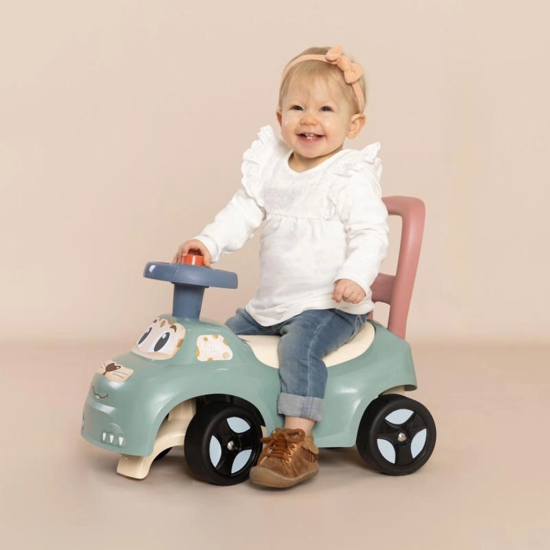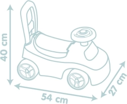 Детското колело за бутане във форма на автомобил съчетава безопасност и комфорт. Благодарение на стабилната конструкция и ергономичния дизайн е идеално за малки деца. Основните предимства включват: