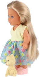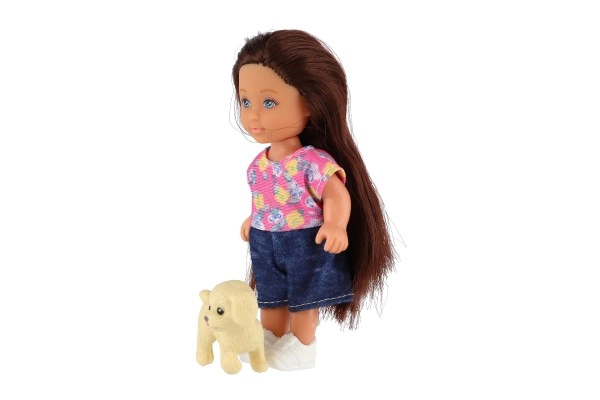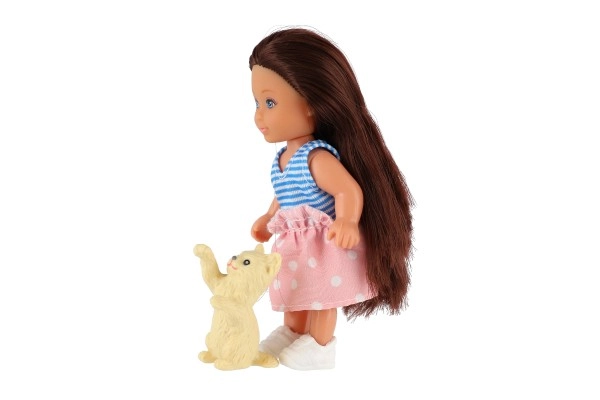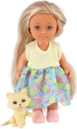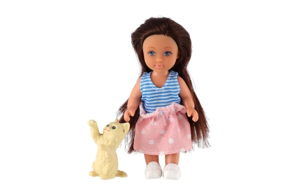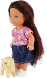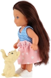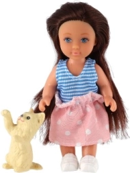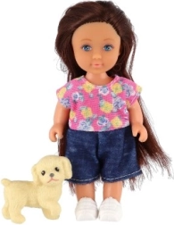 Очарователна кукла с домашен любимец за всекидневна игра. Благодарение на компактния размер 12 см, здрава твърда конструкция и подвижни части, идеално ляга в детската ръка и насърчава творческата игра, въображението и социалните умения. Подходяща за деца от 3 години, опакована в подаръчна кутия.