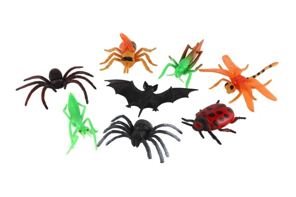 Комплектът от 8 броя включва различни видове като паяк, калинка, пчела, богомолка и скакалец – идеален за опознаване и тематични игри.