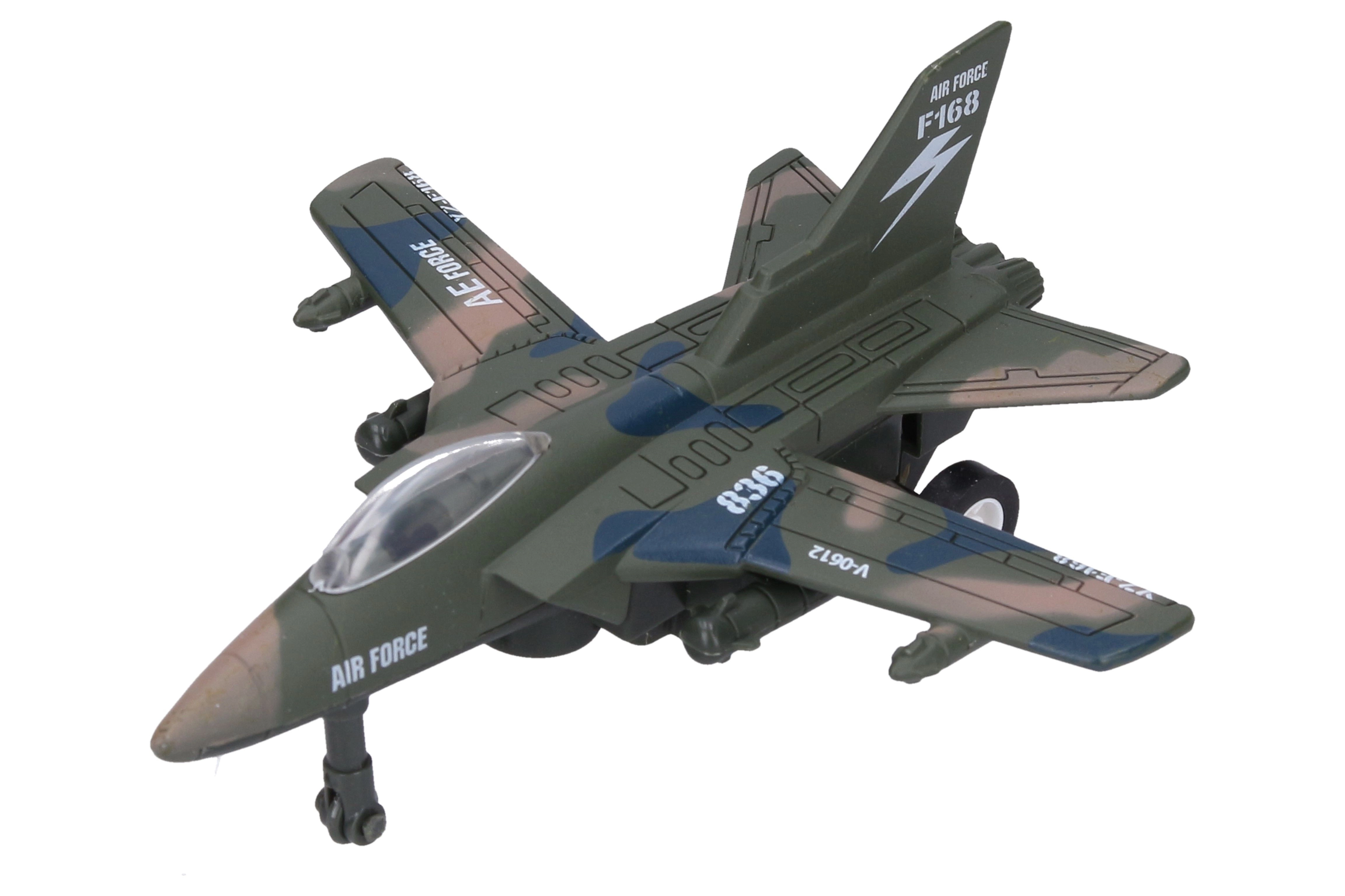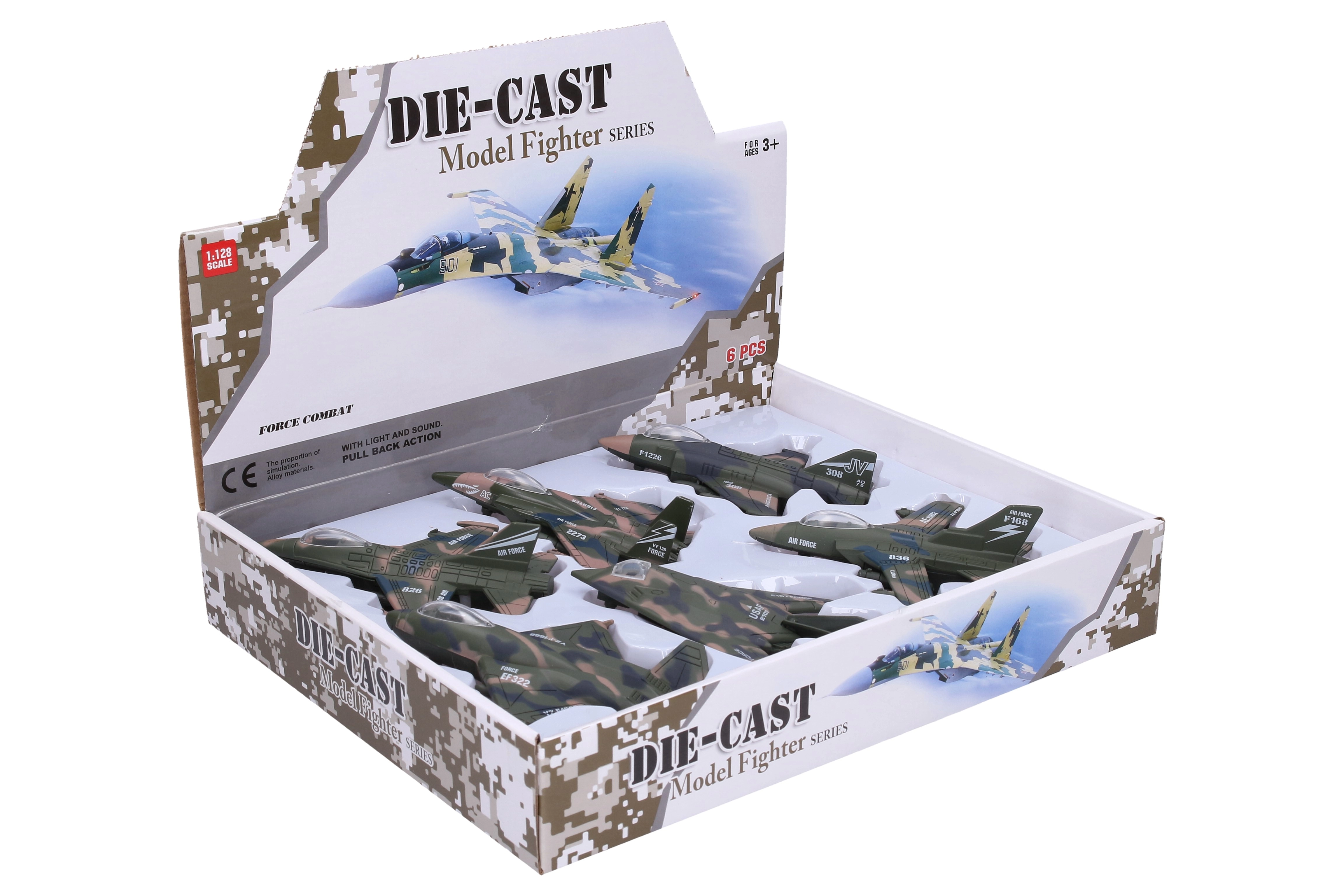 Този комплект малки изтребители предлага реалистичен вид, устойчива изработка и забавление за ежедневна игра. Благодарение на металните елементи моделите изглеждат качествени, а с пластмасовите детайли ще се насладите на прецизни линии на крилата, кокпита и колесника. Механизмът за връщане осигурява динамично действие – дръпнете назад, пуснете и изтребителят полита напред.