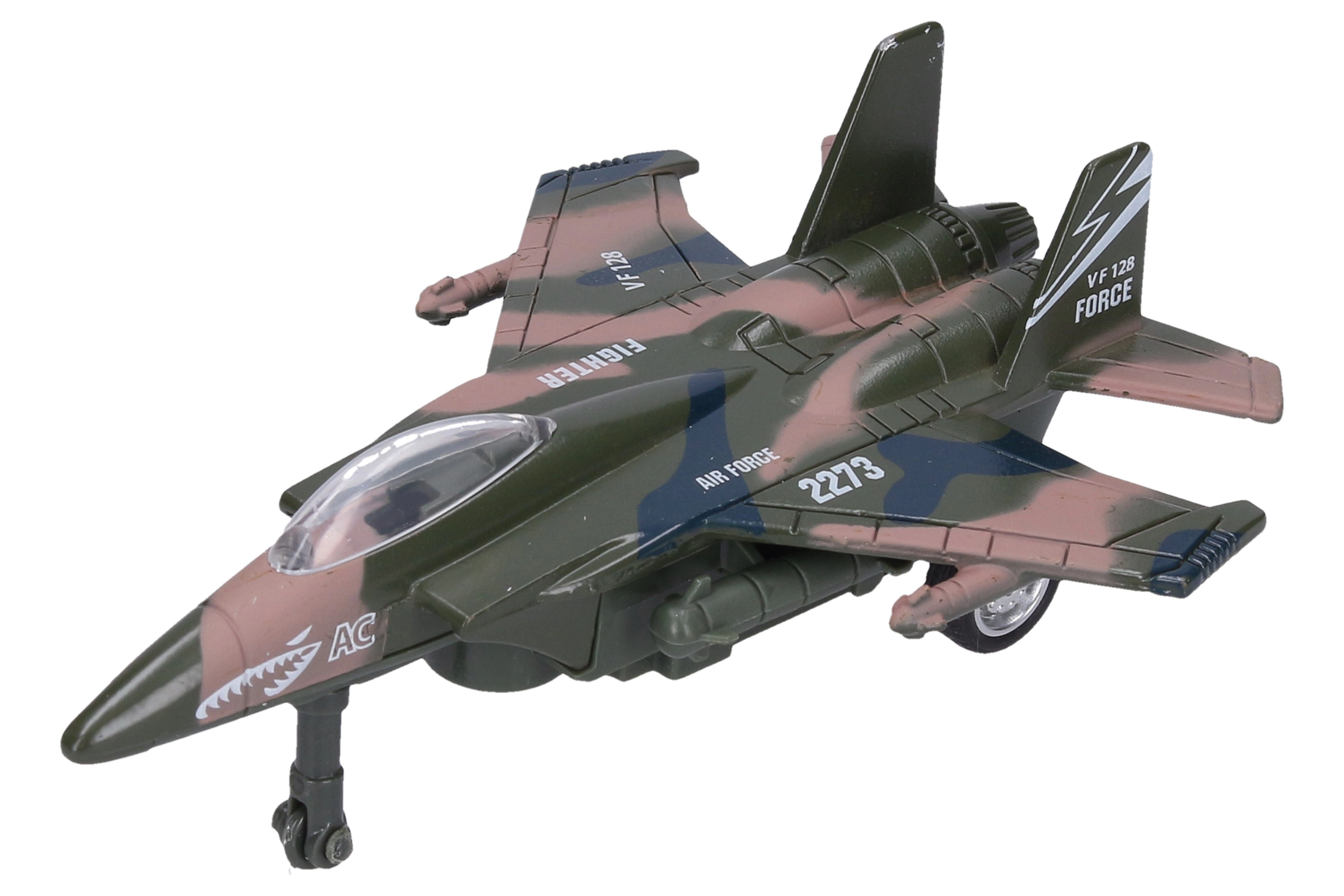 Просто дръпнете назад, пуснете и изтребителят полита напред. Забавление без батерии – идеално за бързи състезания и въображаеми мисии.