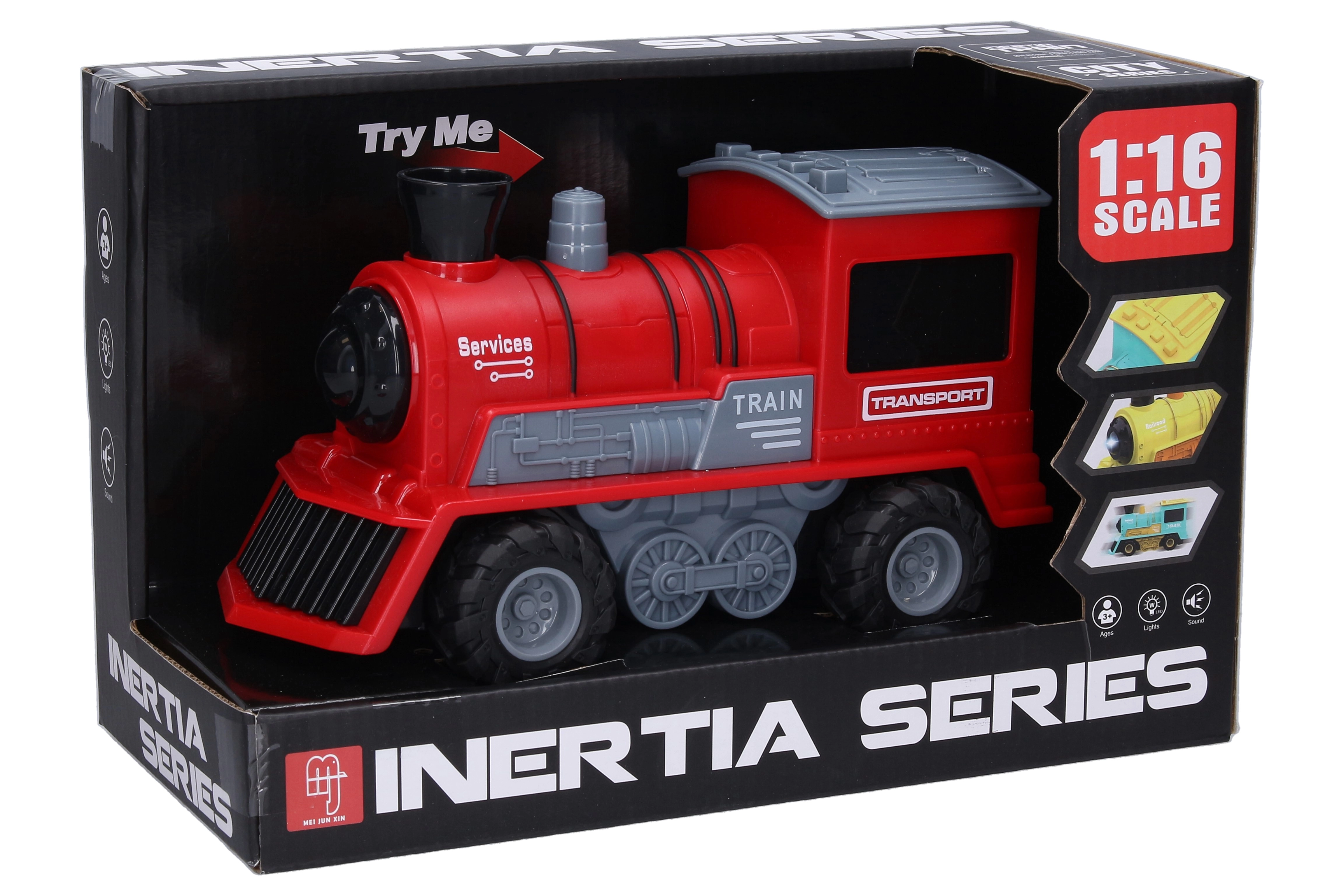 Това локомотивче с ефекти носи на децата много радост и стимули за творческа игра. Благодарение на бутоните директно върху локомотивчето децата могат да активират светлинни и звукови ефекти, които придават на движението реалистична атмосфера. Механизмът за обратно навиване осигурява лесен и бърз старт без сложна работа с него.