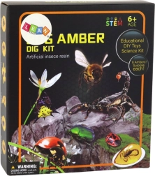 Археологическият комплект Изкопни насекоми в кехлибар е изключителен образователен набор, който дава възможност на децата да се превърнат в малки археолози. Ключов елемент на комплекта е отливният блок със скрити насекоми в изкуствен кехлибар. Задачата е да се разкрият тези съкровища с помощта на включените чукче и длето, което подпомага развитието на координацията и концентрацията.