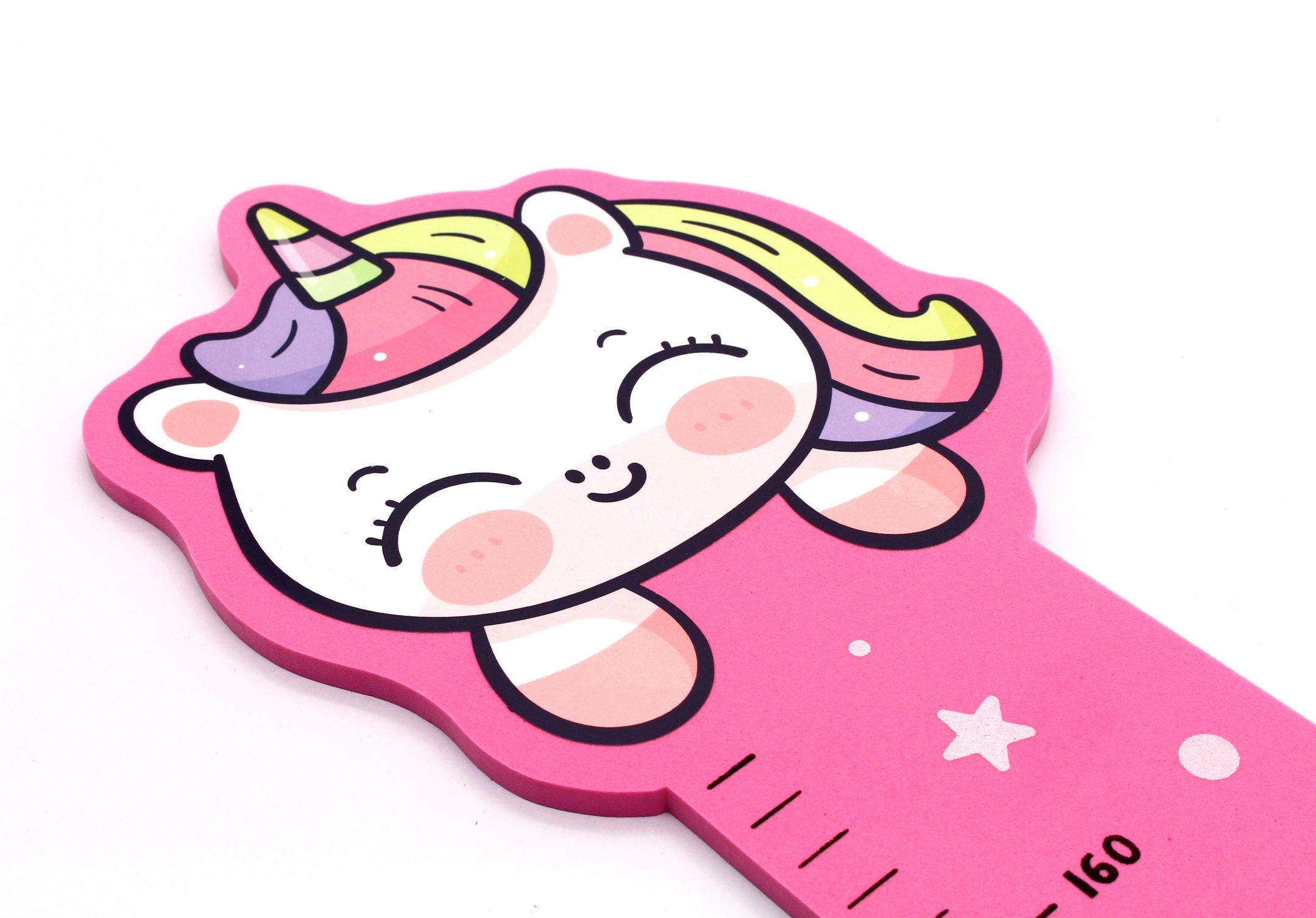 Мерителят за стена Еднорог е идеален избор за всяка детска стая. Благодарение на своя магичен дизайн внася приказна атмосфера в интериора. Този мерител е изработен от мек пянов материал, което осигурява безопасна употреба за деца.