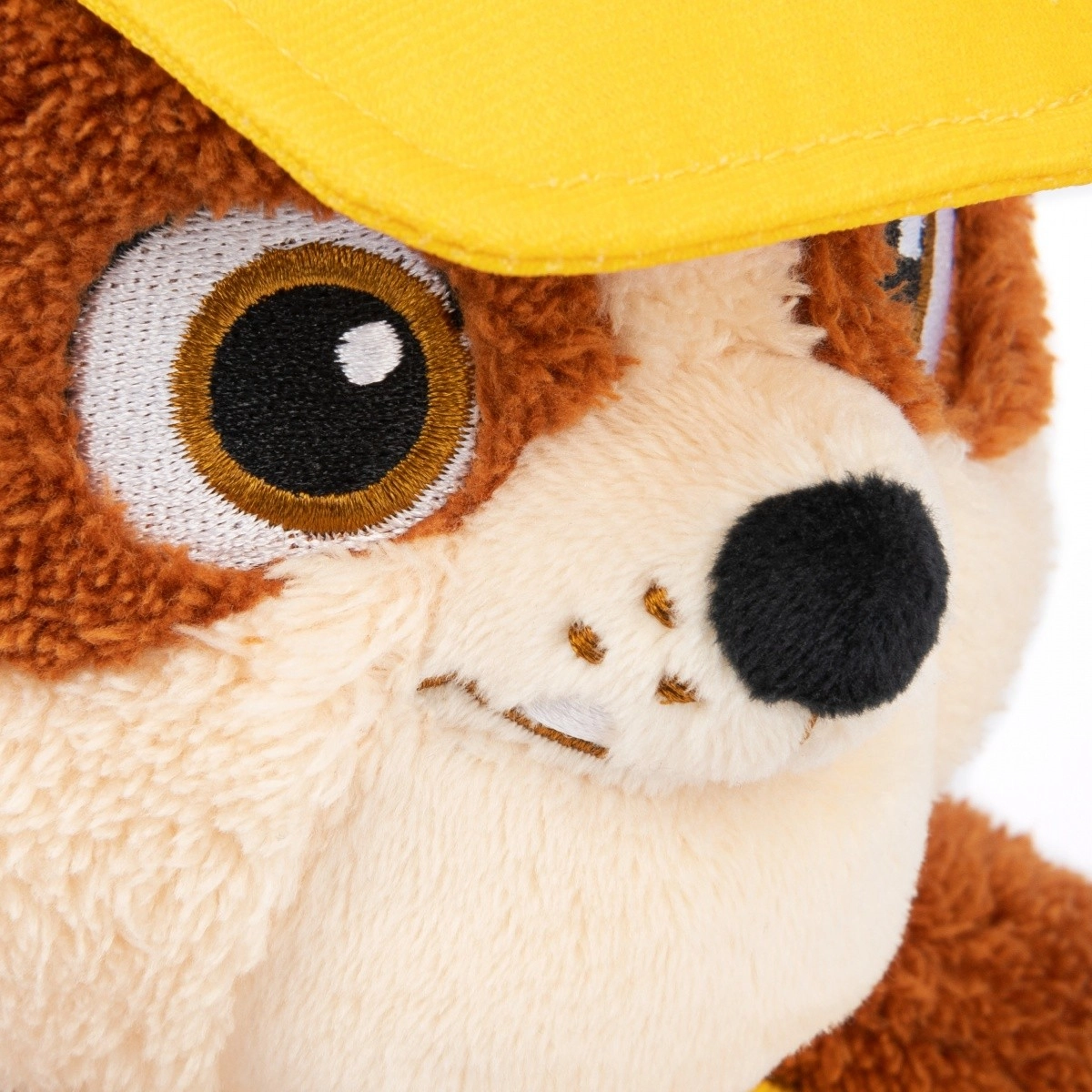 Този 33 см висок Ръбъл е с жълта строителна униформа и каска, с характерната значка на Пес Патрул и кафяв плюш, идеален за игра по време на път.