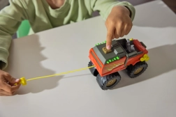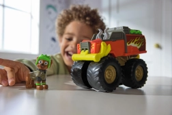 Потопете се в света на вълнуващите спасителни операции с превозното средство Boomer от прочутата поредица Пес патрул. Този чудовищен камион е оборудван с големи колела, които вярно пресъздават стила на превозните средства от сериала, а благодарение на изтеглящия се теглич с кука предлага безкрайни възможности за игра. В моменти на нужда просто изтеглете въжето, закрепете го с куката и с натискане на бутона го навийте обратно, с което започва драматична спасителна мисия.