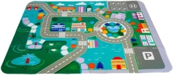 Пъзел подложката образува завършен градски план с пътища и зони за сгради, така че децата лесно се ориентират, а играта е ясна и завладяваща.