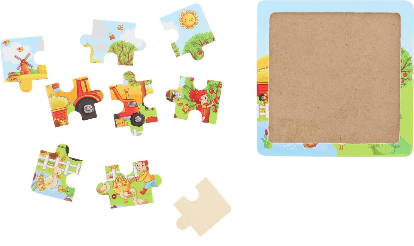 Мотивът „реколта“ естествено стимулира любопитството и разширява речниковия запас. Пъзелът е подходящ както за кратки игрови моменти, така и за съсредоточена дейност. Естественият материал е приятен на допир и издръжлив за ежедневна игра.