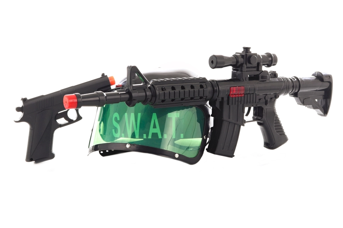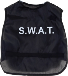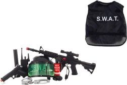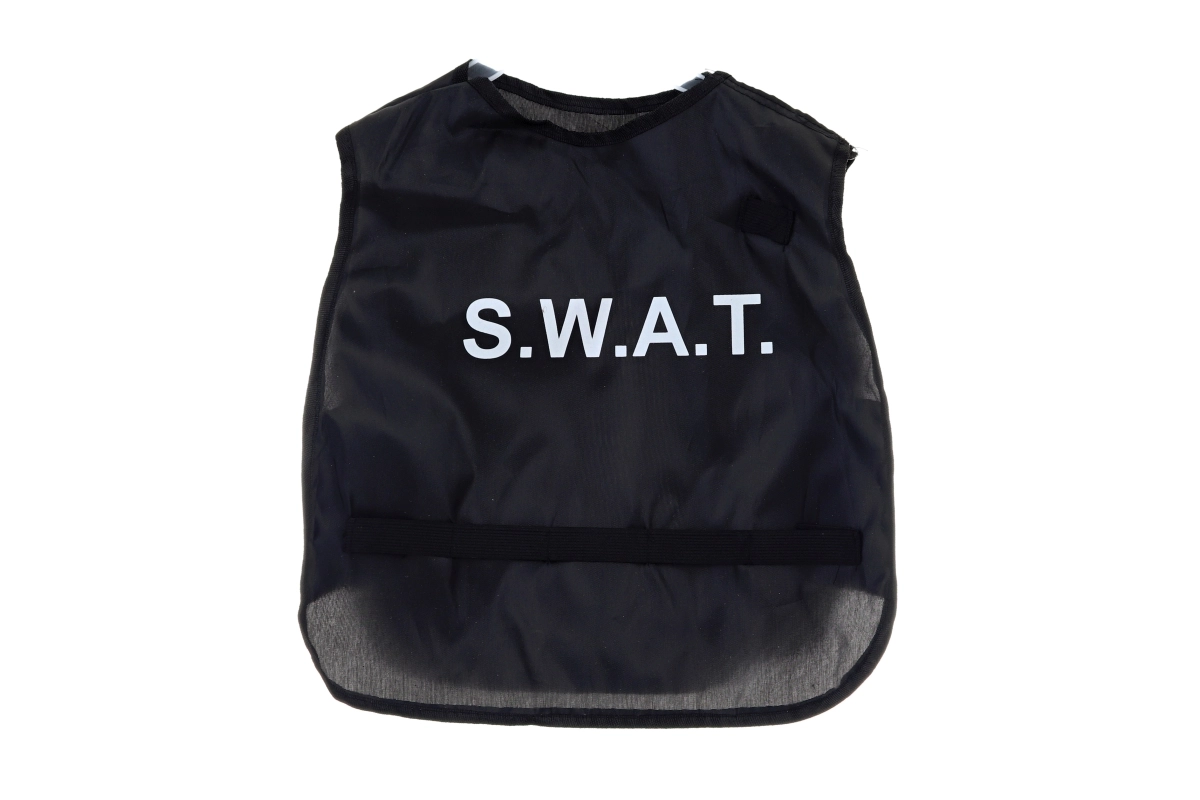 Черна жилетка с надпис S.W.A.T., каска с визьор и богати аксесоари създават автентична визия за ролева игра.