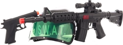 Автомат, пистолет, белезници, уоки-токи и граната добавят напрежение и забавление към играта, като същевременно остават безопасни благодарение на пластмасовото изпълнение.