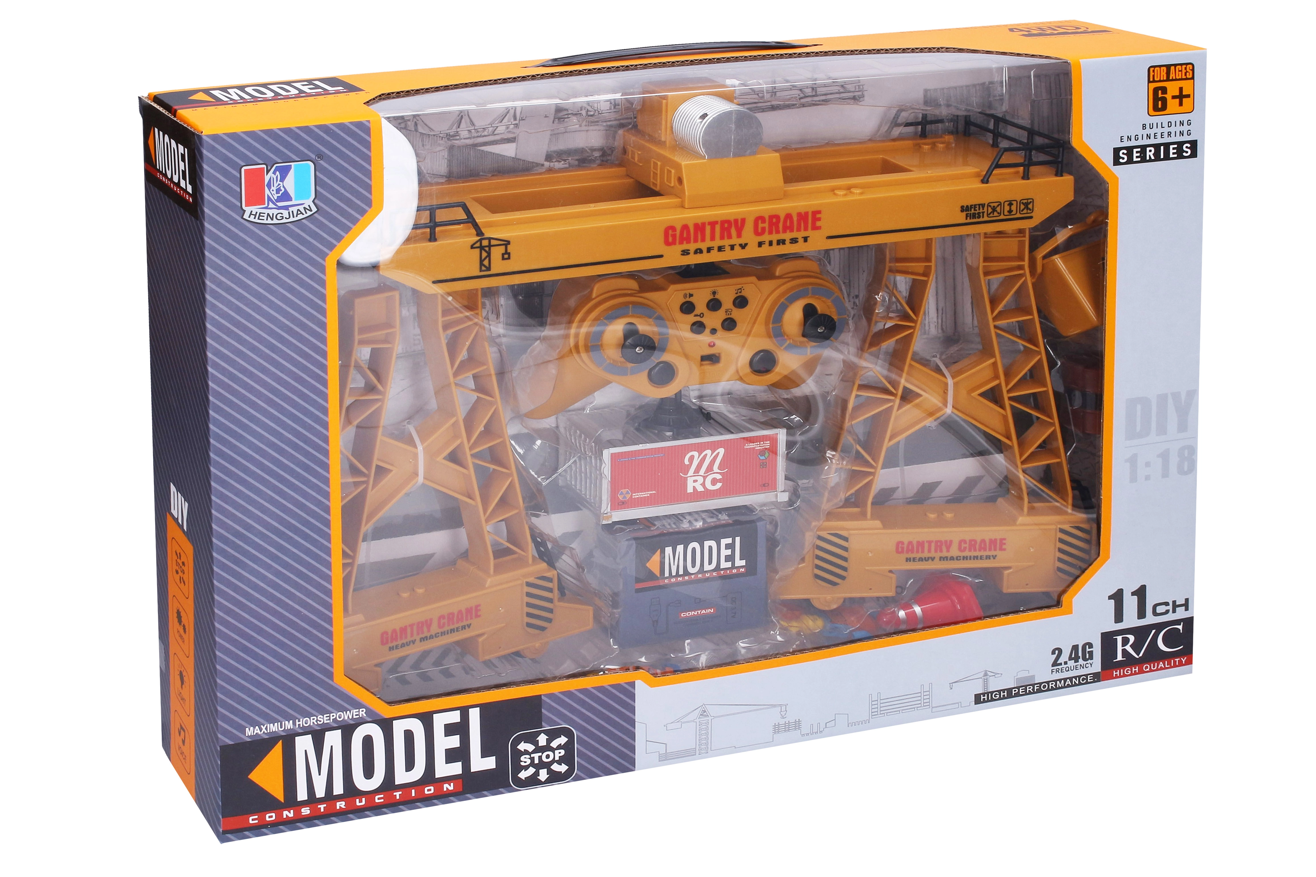 Този реалистичен портален RC кран носи на децата вълнуващо строително изживяване. Дистанционното управление позволява движение напред и назад, завъртане на място и прецизно повдигане и поставяне на товар. Комплектът включва контейнер, кофражна кофа, варели, трупи и конуси за автентични строителни сценарии.