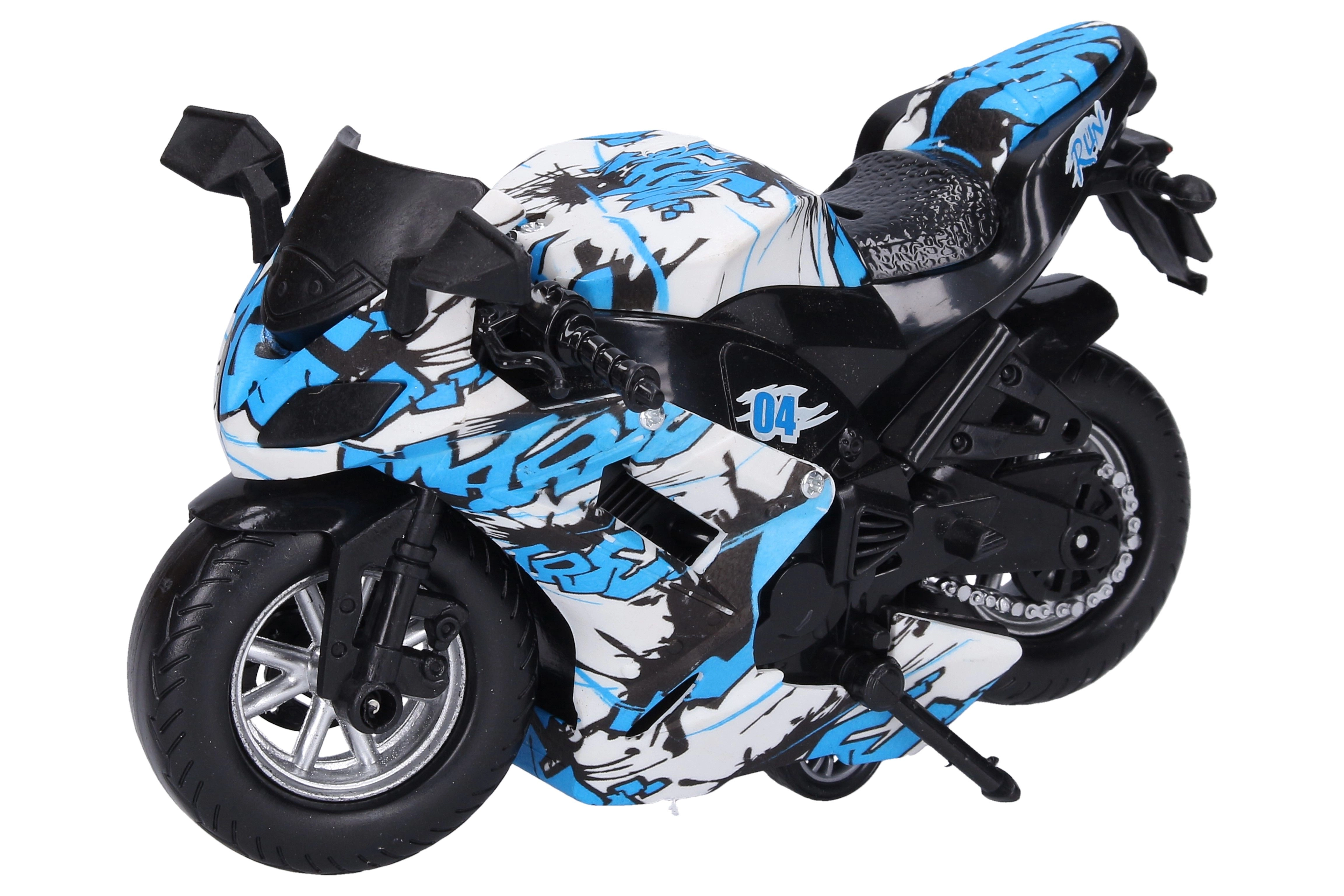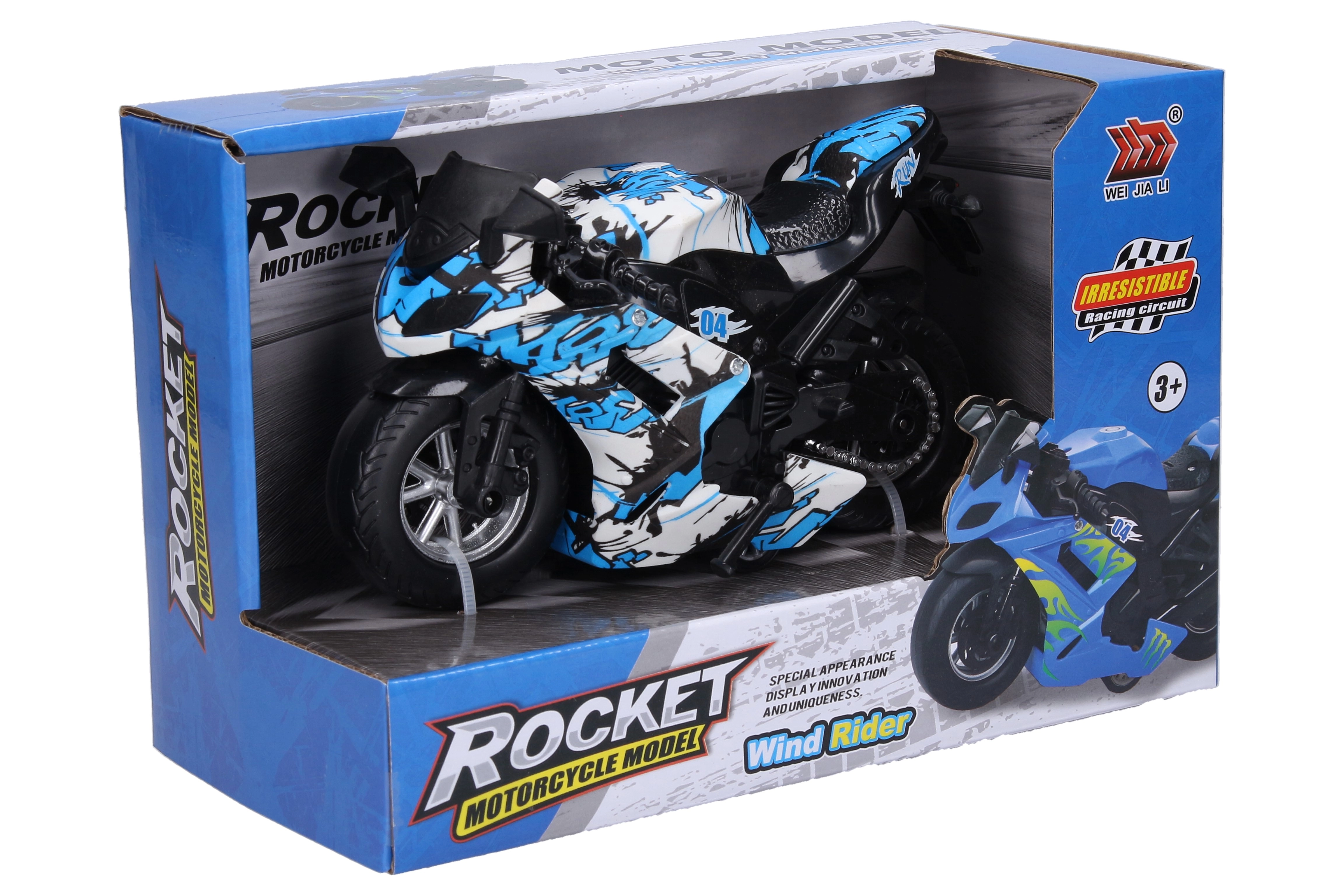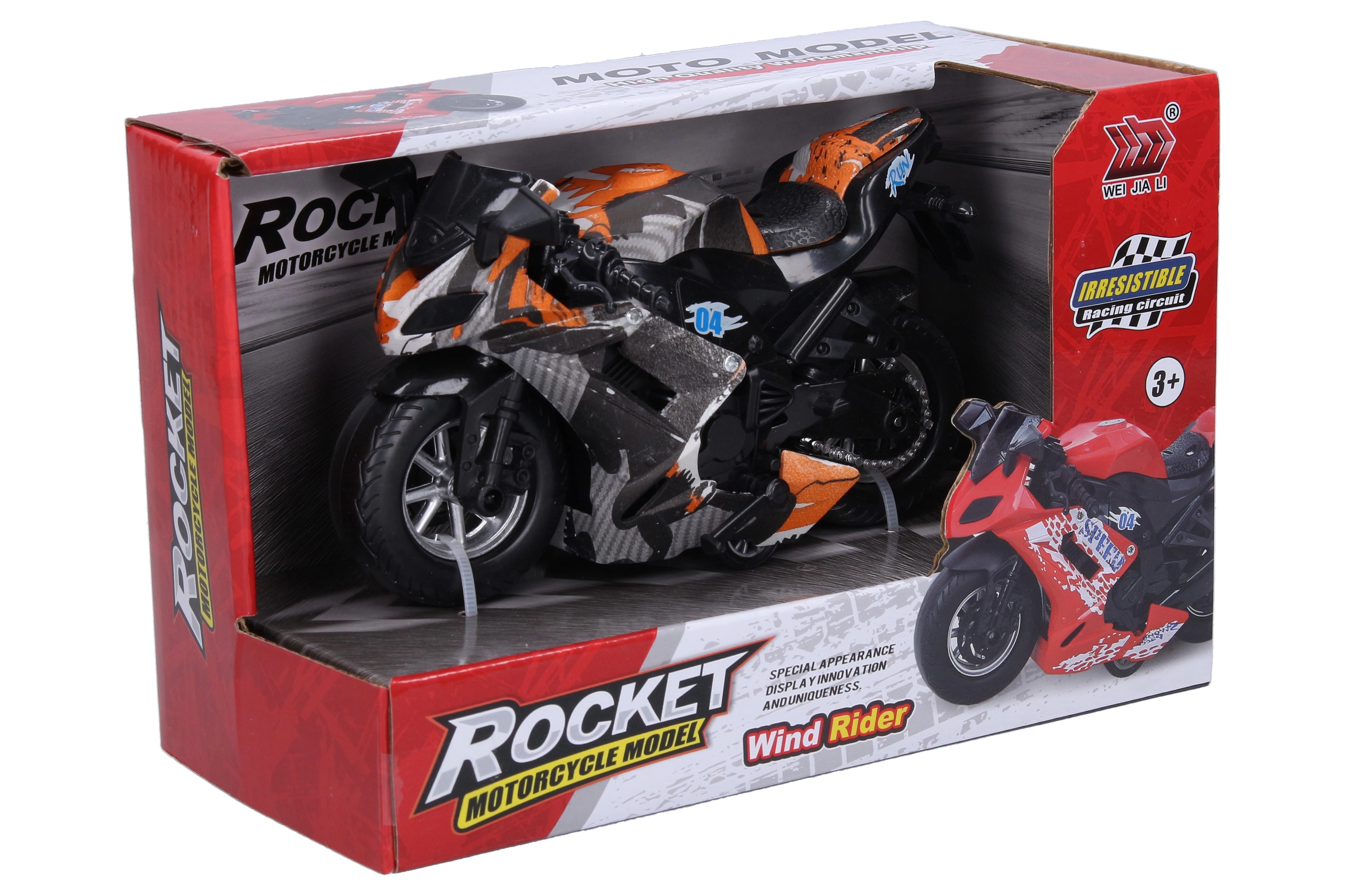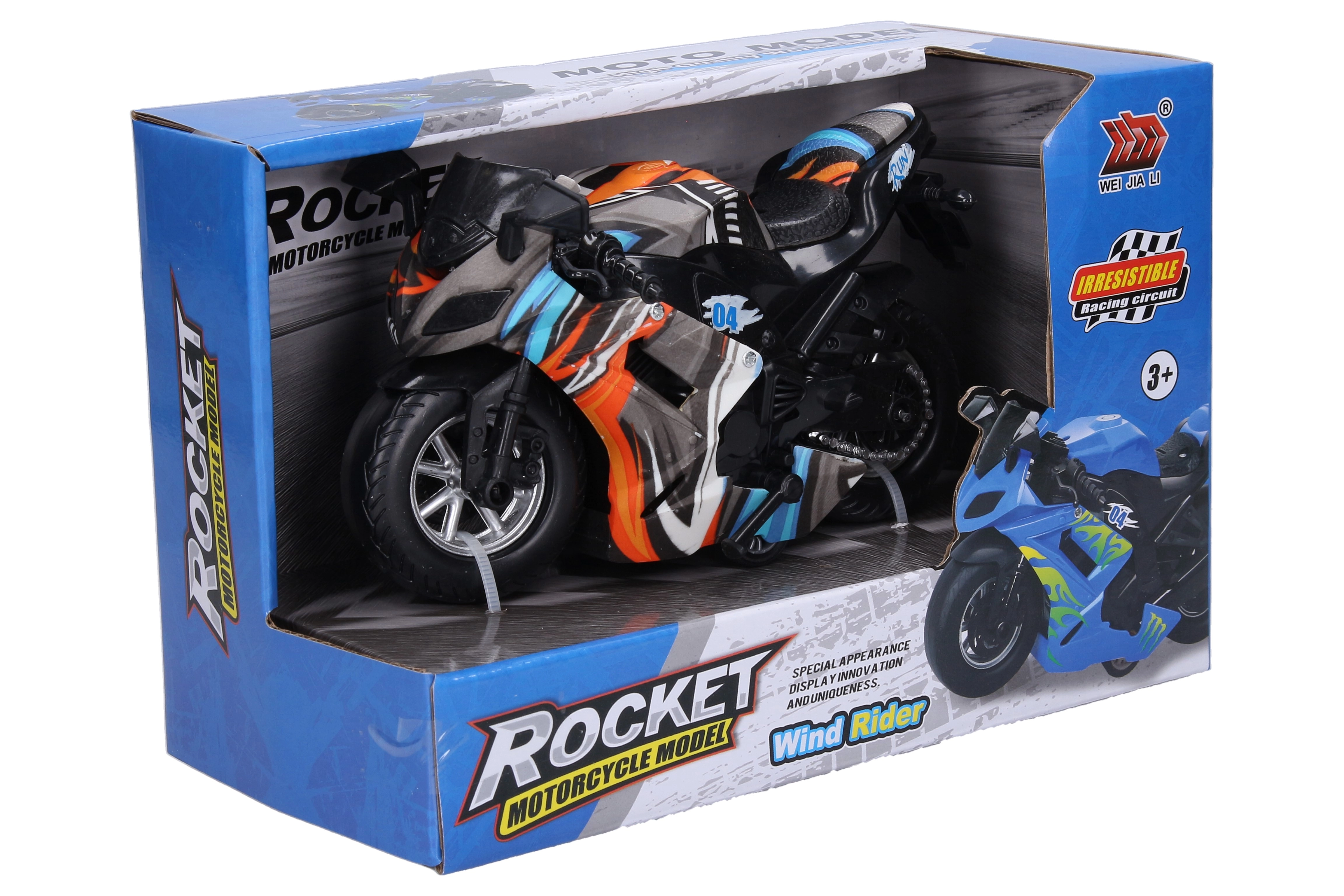 Забавен мотор с инерционен механизъм с дължина 16 см ще зарадва малки и големи фенове на високата скорост. Благодарение на механиката с обратно навиване е достатъчно да го дръпнете назад и да го пуснете – потегля напред сам. Компактните размери и здравата изработка са идеални както за домашни състезания, така и за пътуване. Предлага се в няколко цветови варианта и с лесно управление без батерии.