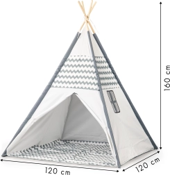 Създайте за децата собствен кът за игра, четене и релакс. Типи палатката ECOTOYS с размери 120 × 120 × 160 см предлага достатъчно пространство, за да играят вътре няколко деца едновременно. Благодарение на издръжливата текстилна материя и дървените пръти палатката запазва форма, като остава лека и лесна за пренасяне.