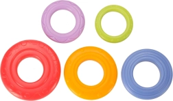 Децата усъвършенстват координацията и фината моторика чрез подреждане на ринговете.