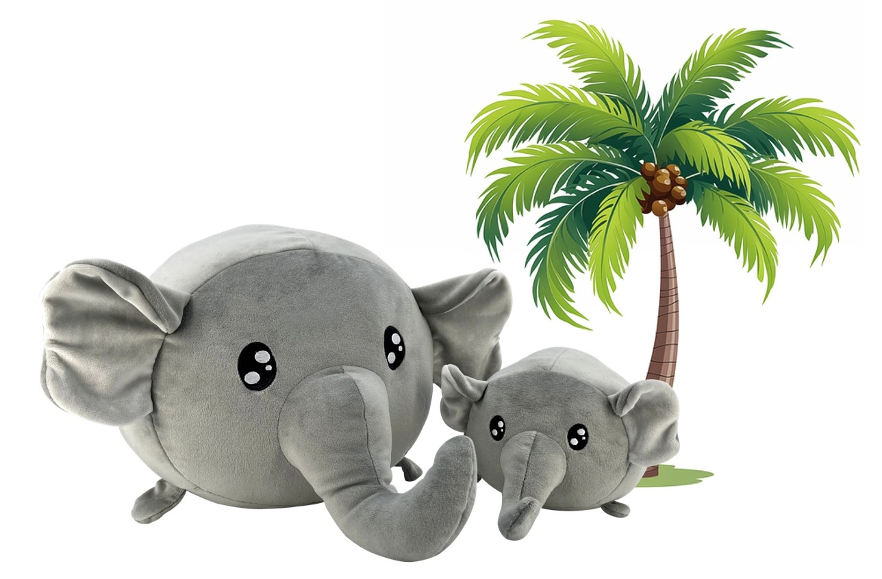 Нежен плюш, големи очички, дълъг хобот и ушички – идеален за гушкане и успокояване преди сън.