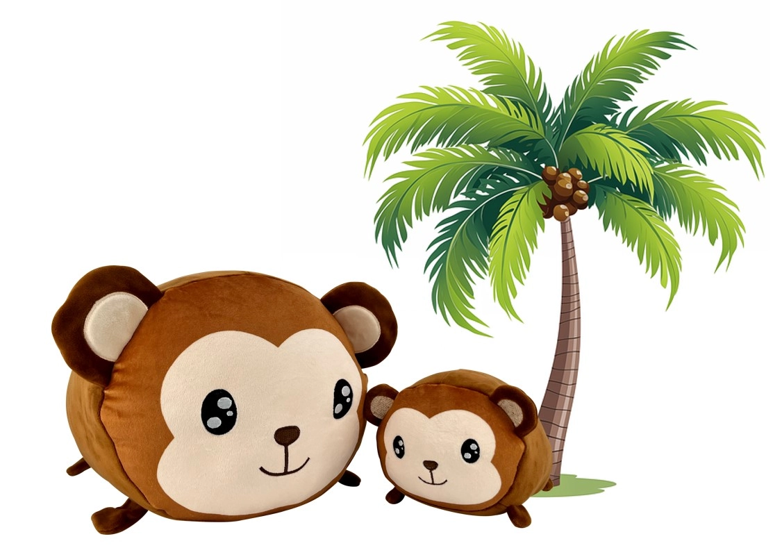 Приятелското изражение и форма, вдъхновени от маймунско семейство, развиват детското въображение и приканват към гушкане и игра.