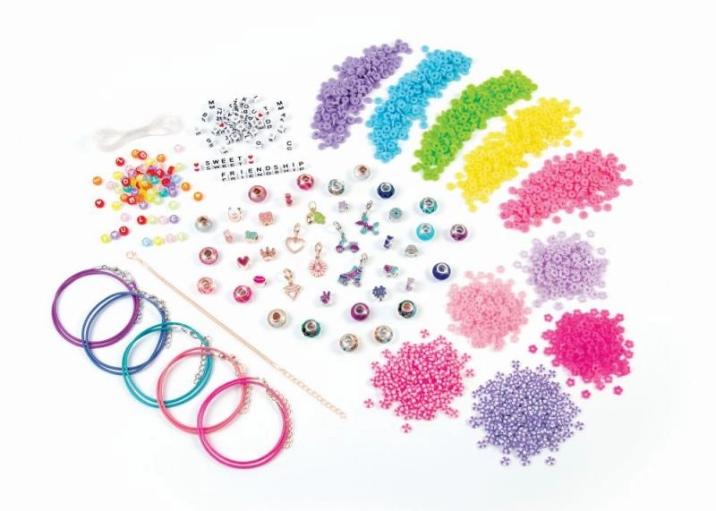 Открийте ново ниво на творческо забавление с Deluxe Studio Бижута! Този комплект позволява да направите повече от 30 гривни, които можете да носите, споделяте или разменяте с приятели. С помощта на широка гама мъниста, от буквени мъниста до цветни хейши мъниста, можете да създадете бижута според собствените си представи.