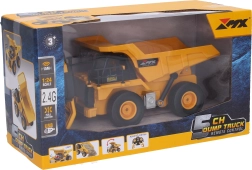 Компактен RC самосвал с дължина 19,5 см, предлага дистанционно управление на честота 40 MHz с обхват 15 м. С бутоните на контролера лесно активирате повдигане и спускане на каросерията, като не липсват атрактивни светлинни ефекти. В комплекта са включени батерия 3,7 V 500 mAh за модела и USB кабел за зареждане; контролерът изисква 2× AA (не са включени). Практичният превключвател ON/OFF се намира в долната част.