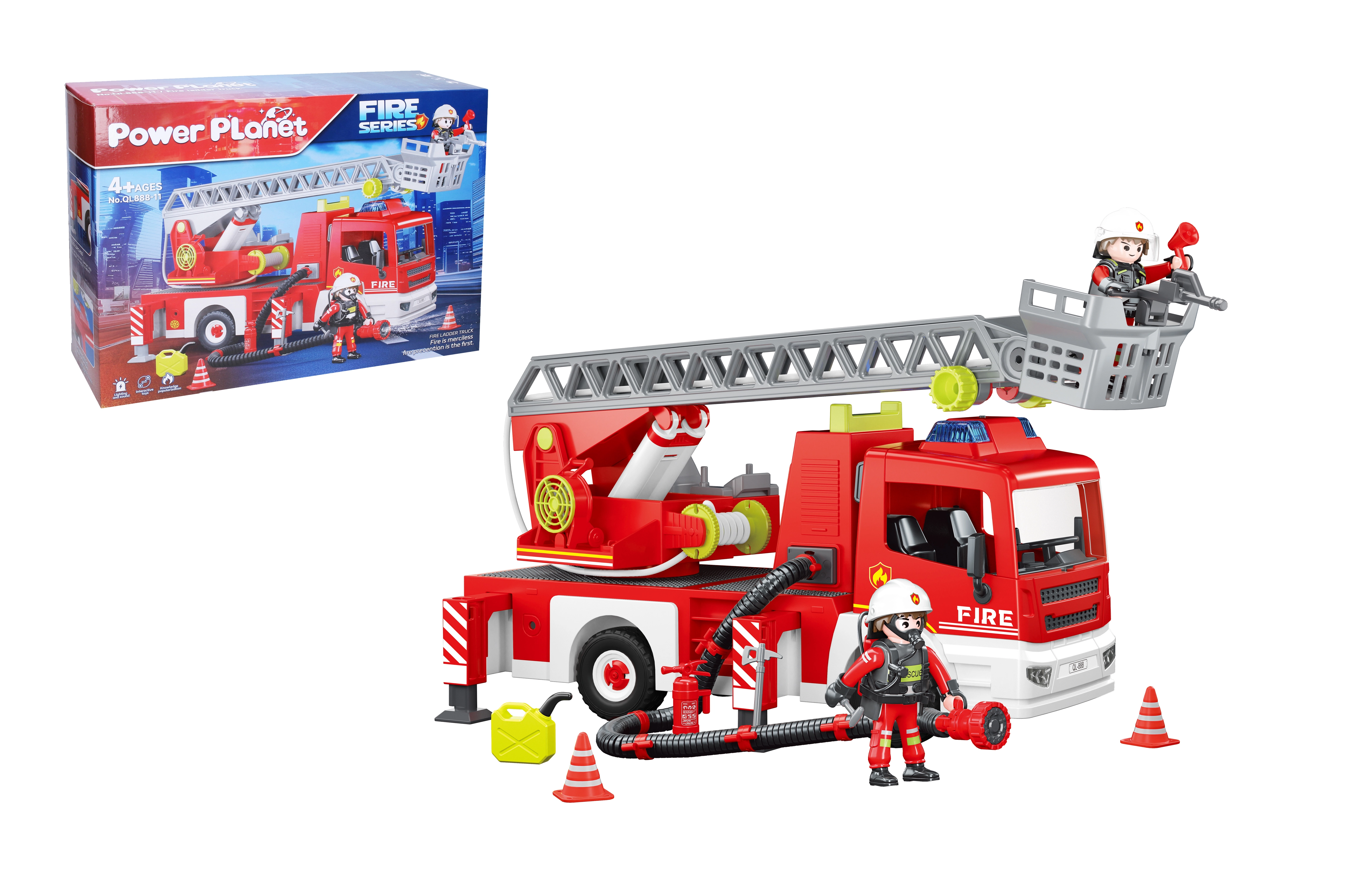 Пожарната кола с изтегляща се стълба е перфектен конструктор за всички малки спасители. С реалистични светлинни и звукови ефекти носи безкрайни часове забавление.