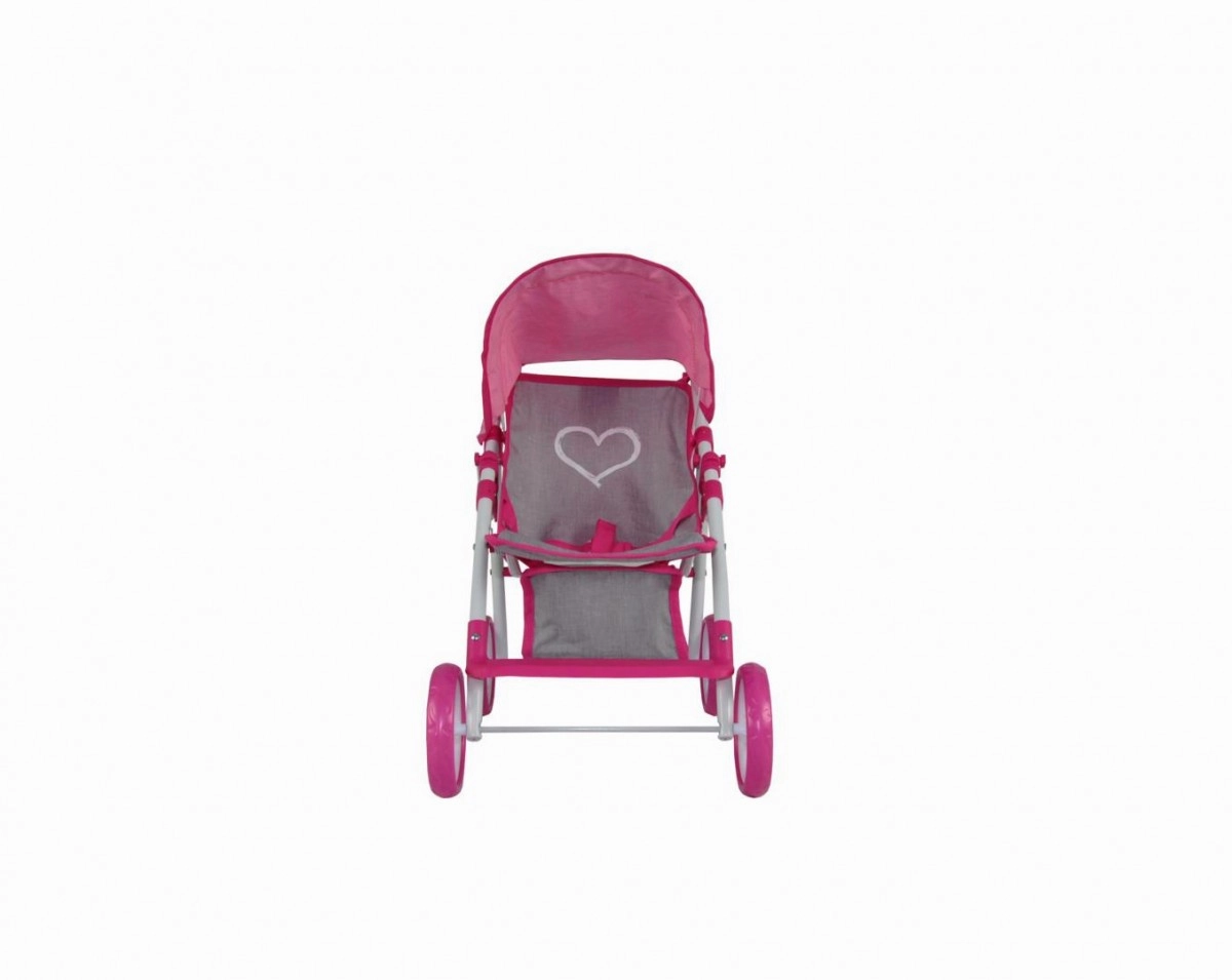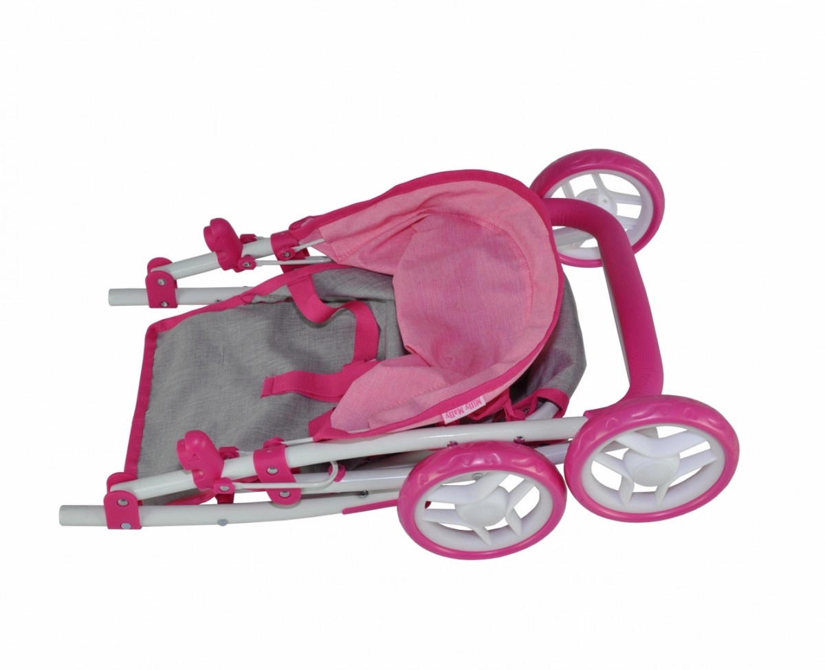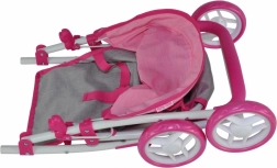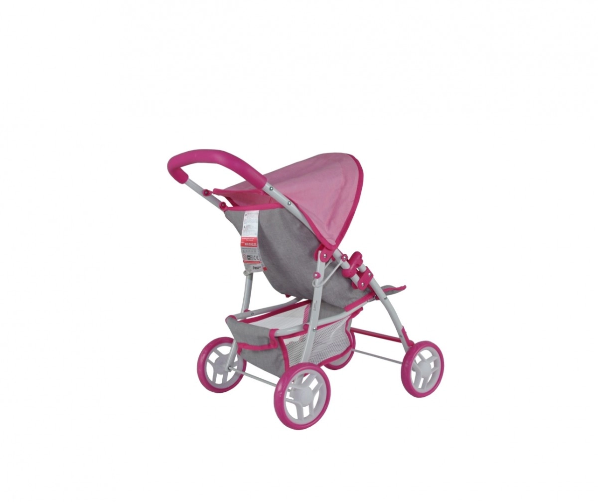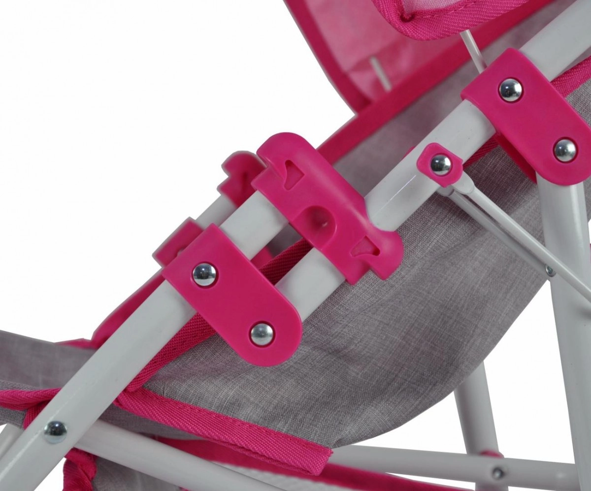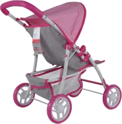 Стилна и практична количка за кукли, която изглежда като истинска. Благодарение на здравата метална рамка, меката дръжка и предпазните колани е идеална за ежедневна игра у дома и навън. Сгъваемият сенник пази куклата от слънце и вятър, а долната мрежа осигурява място за играчки и малки покупки.