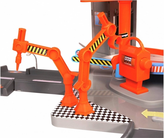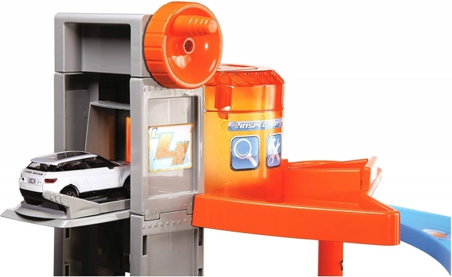 Гаражът подпомага фината моторика, въображението и ролевите игри. Реалистични елементи като роботизирани рамена в сервиза, подемна платформа и автомивка с валяци осигуряват автентично изживяване от работата на автосервиз и паркинг.