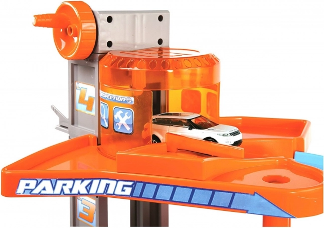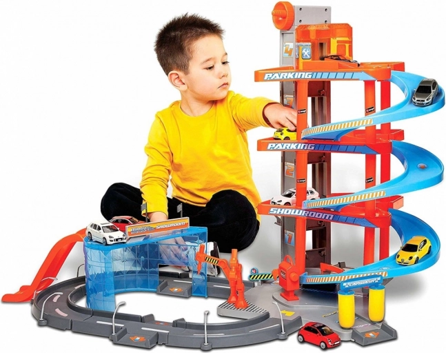 Многоетажният гараж Bburago за малките шофьори предлага 4 етажа пълни със забавление, функционален асансьор, автомивка, сервиз с роботизирани рамена и подемна платформа. Включени са 2 метални колички 1:43 и множество детайли за реалистична игра.