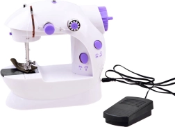 Мини шевната машина предлага идеалната комбинация от преносимост и функционалност. Перфектна за усвояване на първите стъпки в шиенето за деца и възрастни. Компактният и лек дизайн позволява лесно съхранение и преместване. Машината работи или с включения педал, или ръчно. Може да се захранва с адаптер или батерии, което осигурява гъвкава употреба навсякъде.