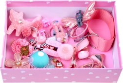 Този прекрасен комплект аксесоари за коса е идеален за всяка малка дама, която желае да придаде на косата си елегантност и стил. Включва 24 разнообразни елемента, които позволяват създаване на оригинални прически за различни поводи като рожденни тържества, карнавални балове или ваканционни приключения. Всеки елемент е проектиран с внимание към удобството и креативността, така че може да се използва не само за тържествени събития, но и за училище или ежедневни разходки.