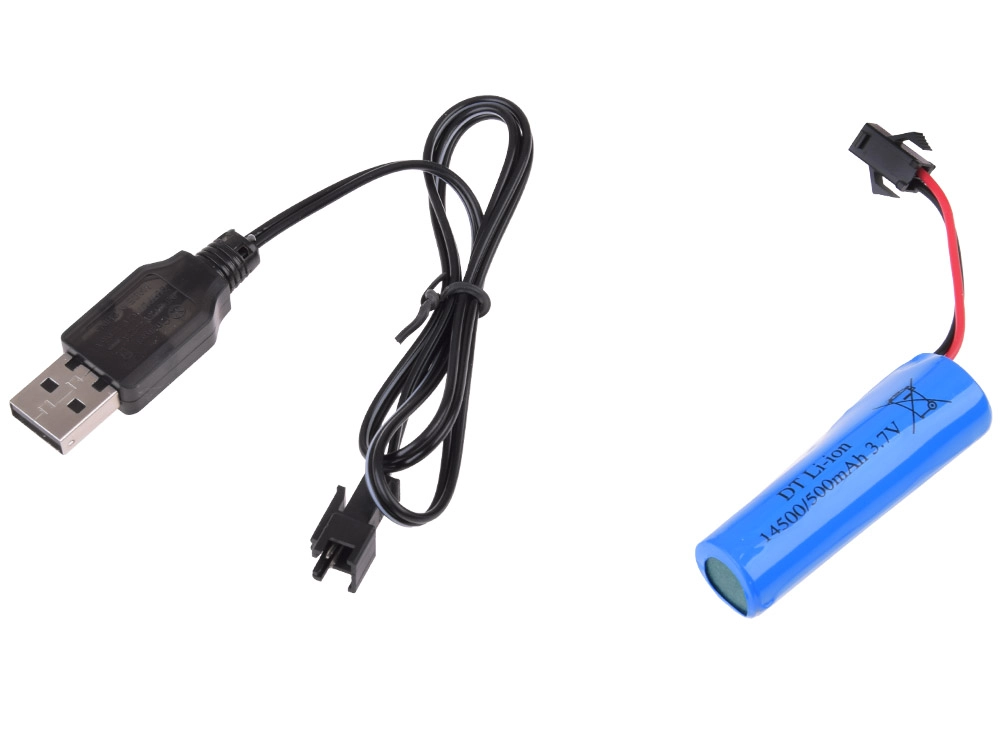 В комплекта са включени акумулатор 3,7 V 500 mAh и USB кабел. Преди първа употреба препоръчваме зареждане поне 2 часа за оптимална издръжливост.