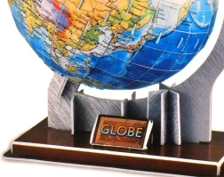 Сглобяването е интуитивно и приятно – отделните части прецизно се свързват, а готовият глобус стои стабилно на поставката. След сглобяване моделът има приблизителни размери 18,5 × 17 × 32 cm, така че изглежда чудесно на бюро или рафт.