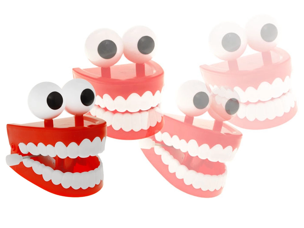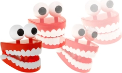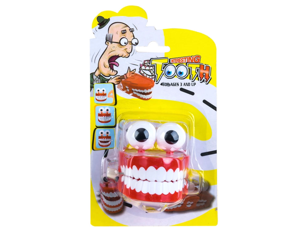 Тази пластмасова играчка с пружинен навиващ се механизъм се задвижва след завъртане на ключето и започва ритмично да щрака със зъби. Веселият дизайн с големи рисувани очи гарантира усмивки и се грижи за забавление у дома, в училище и в офиса.